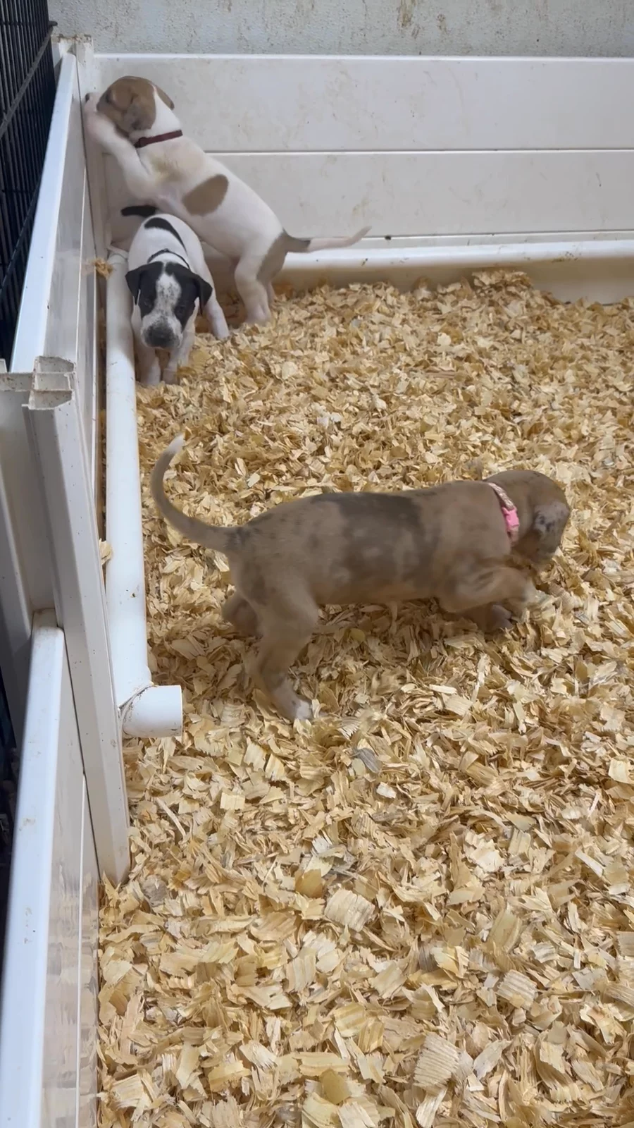One week old! We are growing nicely and beginning to growl and bark! Crawling is progressing more towards walking!