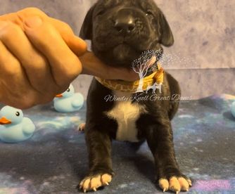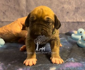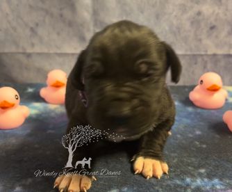 Windy Knoll Great Danes made it a very easy and smooth process for me to come get my boy! He has a great temperament and has been perfect with strangers and very tolerant of young children and their behaviors. All of his vet appointments have gone well and he has had no issues. When he gets a few years older I’ll definitely adopt from WKGD again.