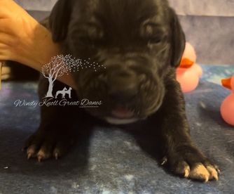 I'm Bonnie B., the breeder behind Windy Knoll Great Danes located in Prosperity, SC. With ANY breeder, kindly terminate your inquiry if you have found your pup elsewhere or are no longer interested. We also do not allow home visits. We are happy to provide the most recent photos and are happy to video call so you can see a puppy!
