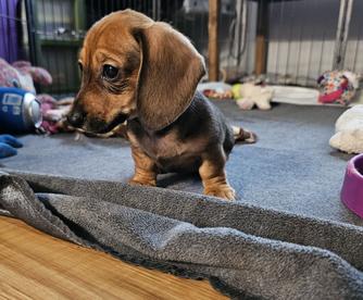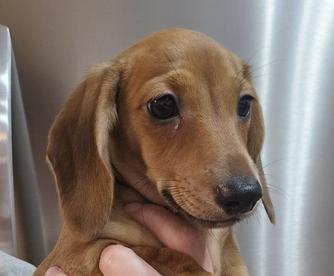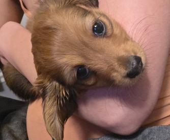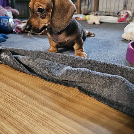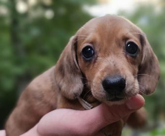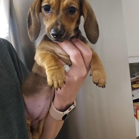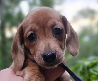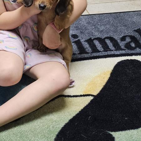 Ellie, our sweet AKC-registered Dachshund girl! She’s a gentle soul with a heart full of love and a playful spirit. Ellie absolutely lives for her outdoor adventures—whether it’s a stroll around the yard or a fun game of chase, she’s happiest with her nose to the ground and her tail wagging. She’s also a big fan of snuggles and attention, always ready to curl up next to you or follow you around like a little shadow.