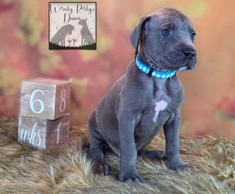 Our puppies include mantle merle, black and white, blue and white, fawn, blue, harlequin, mantle, merle, and black. Colors will vary depending on the parent dogs.