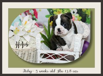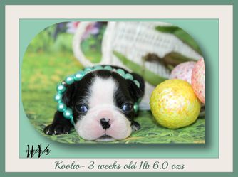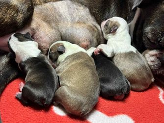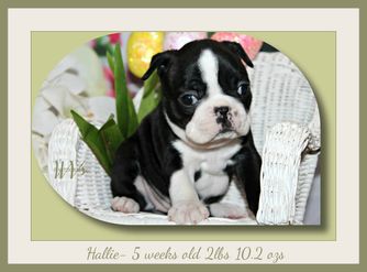 Our puppies include black brindle and white, seal brindle and white, seal and white, brindle and white, and black and white. Colors will vary depending on the parent dogs.