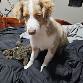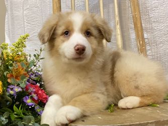 Our puppies include red merle and red tri-color. Colors will vary depending on the parent dogs.
