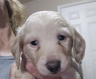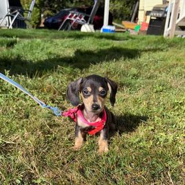 I didn’t know about Good Dog until I joined local WA dachshund groups on FB and I’m glad I found it. I was scammed a couple of times in the past so I was skeptical about using the app at first. I originally wanted a long haired female dapple but I came across “Boy 3” on the Wines Wienery page and immediately fell in love. Showed my husband the photos and didn’t take long to agree on reserving him. Julie is very communicative and provided a full basket of goodies/necessities on gotcha day. We chose to name our new pup Major and we are absolutely in love with him. He’s already potty pad trained and we’ve only had him for a week. Major is a smart and a good little boy that we know will learn more good habits with ease. I highly recommend Julie and Wines Wienery. If we’re ready for another furbaby, we might just contact her again. :)