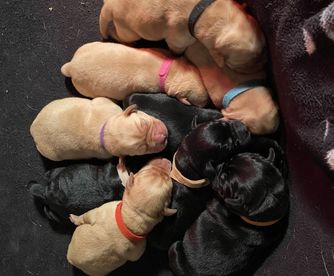 Our puppies include black and yellow. Colors will vary depending on the parent dogs.