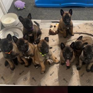 Our Labrador Retriever puppies include black, chocolate, and yellow. Belgian Malinois puppies include fawn and mahogany. Colors will vary depending on the parent dogs.