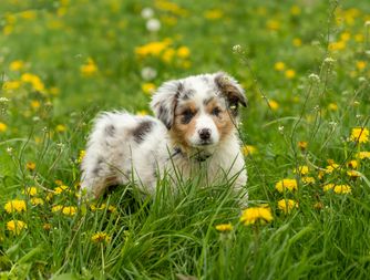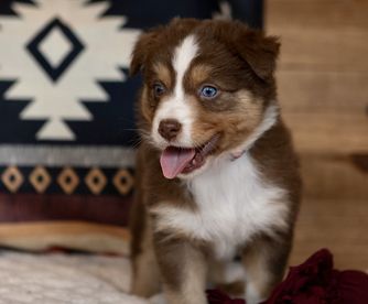Our puppies include red merle and blue merle. Colors will vary depending on the parent dogs.