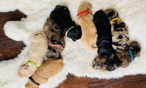 Our puppies include cream, red, black, merle, and parti. Colors will vary depending on the parent dogs.