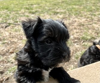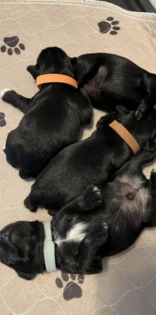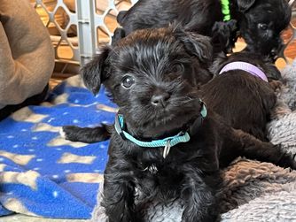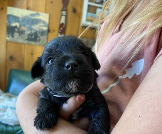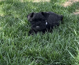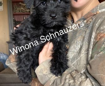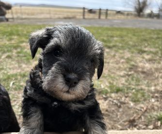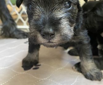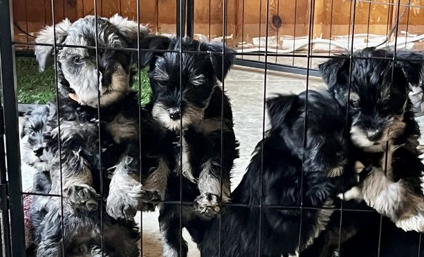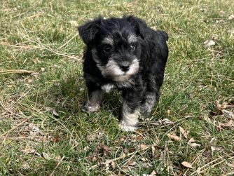 Our puppies include salt and pepper, black and silver, and black. Colors will vary depending on the parent dogs.