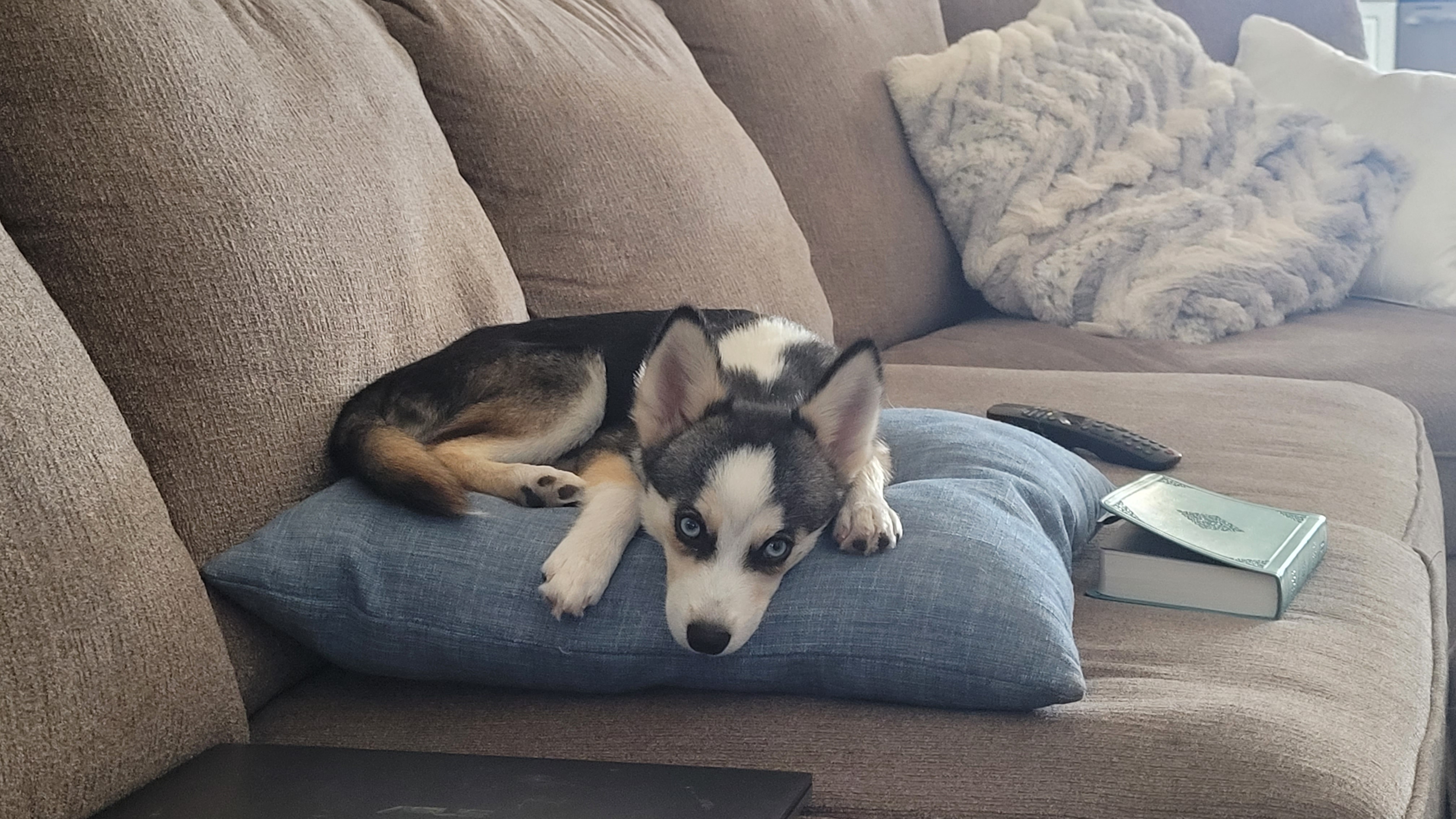 I'm Sarah H., the breeder behind Winsome Pomskies located in Waddell, AZ. Both parents are our personal pets that travel with us to horse shows, and vacations. Our puppies also travel to horse shows and are well socialized after vaccinations. We enjoy swimming in the pool, neighborhood runs, hiking, beach days, and much more with our dogs and living on a working horse farm exposes them to many animals and people daily.
