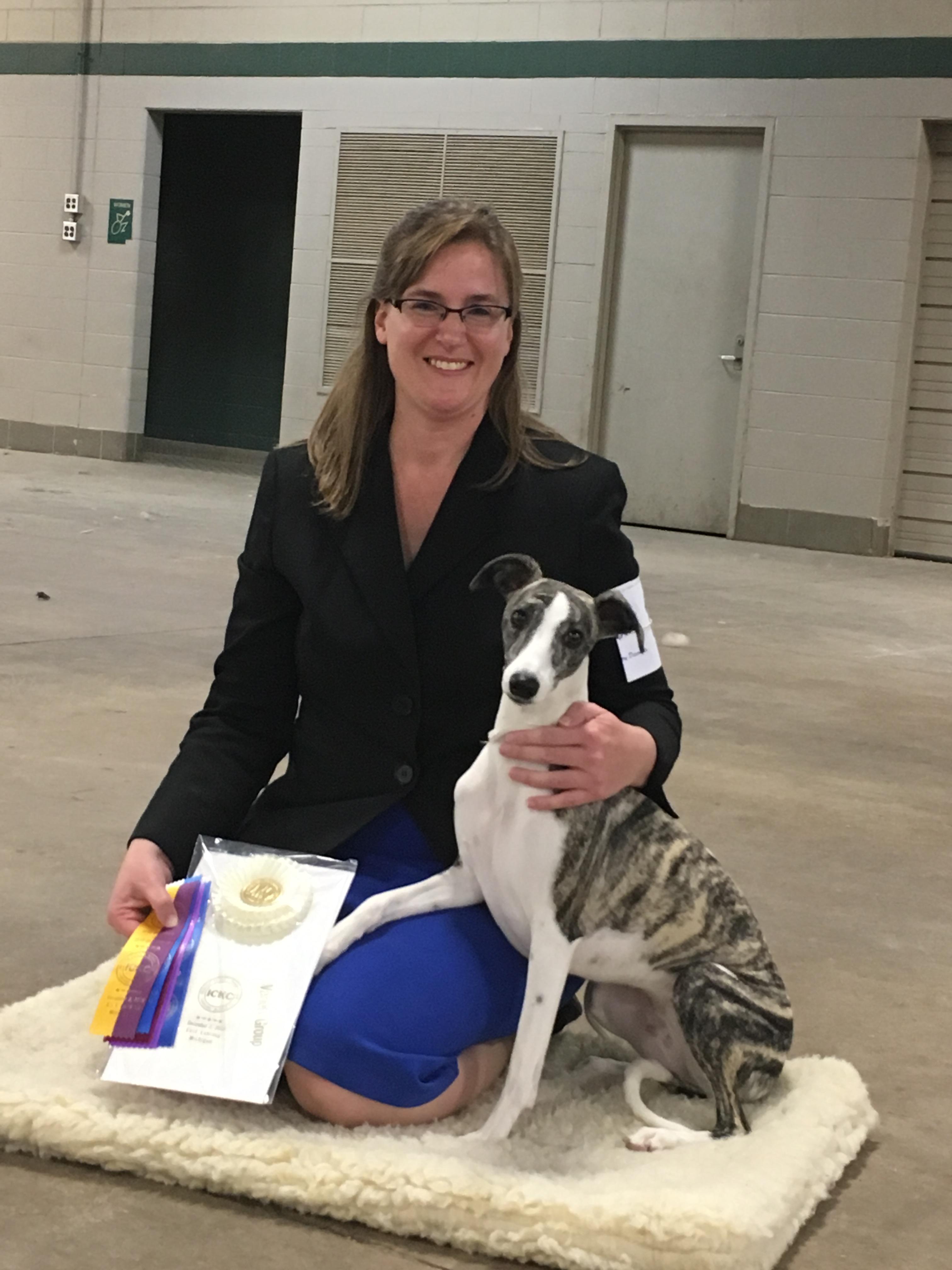 I'm Kelly H., the breeder behind Winstar Whippets located in Fowlerville, MI. We breed health tested, AKC registered Whippets. All of our dogs live in our home and sleep in bed at night. The puppies are also raised in our home using Puppy Culture and receive lots of socialization. We typically have no more than one litter per year. Our goal is to breed healthy puppies with sound temperaments that can compete in a variety of events including conformation, coursing, obedience, agility, or just serve as a wonderful loving companion in your home.