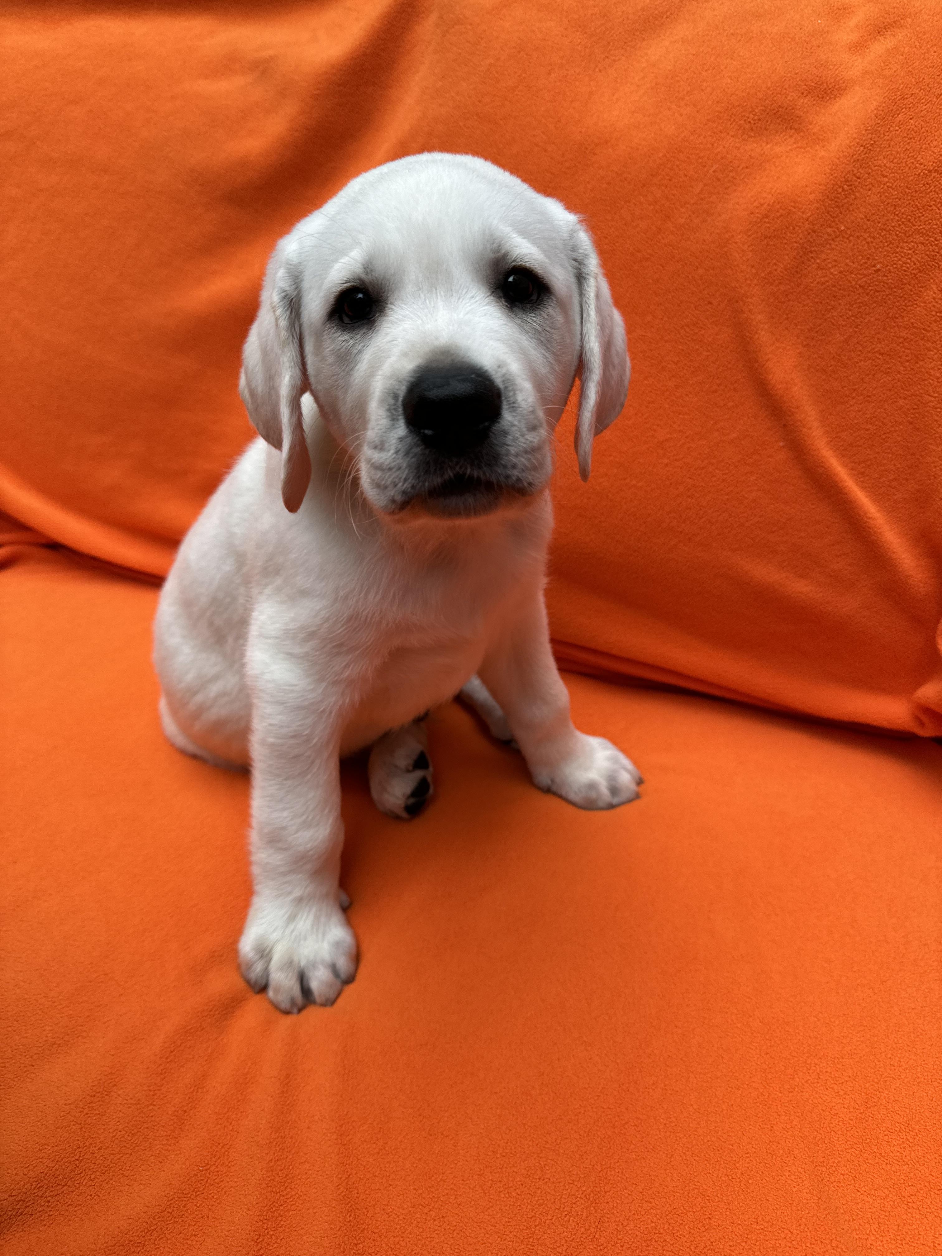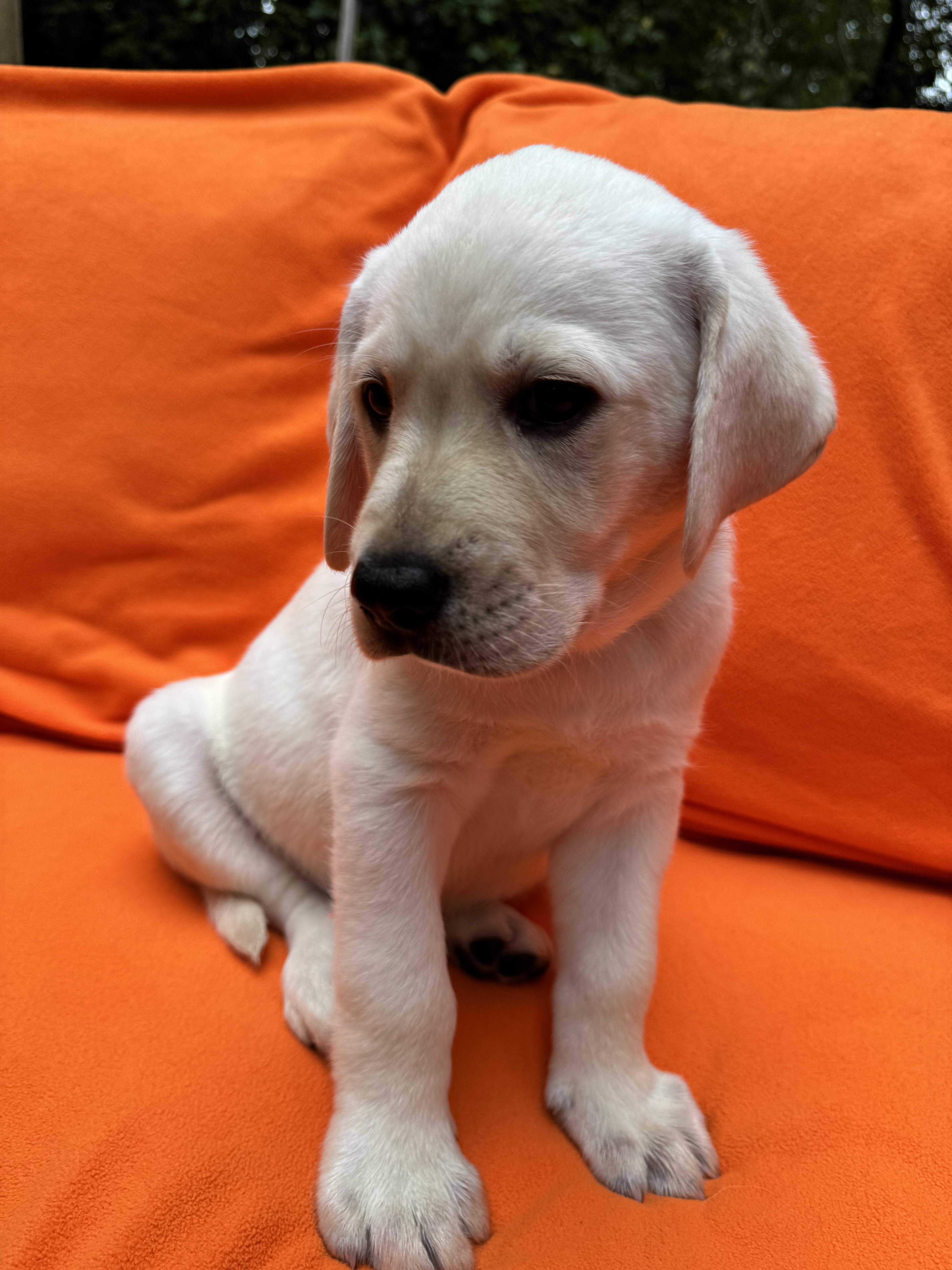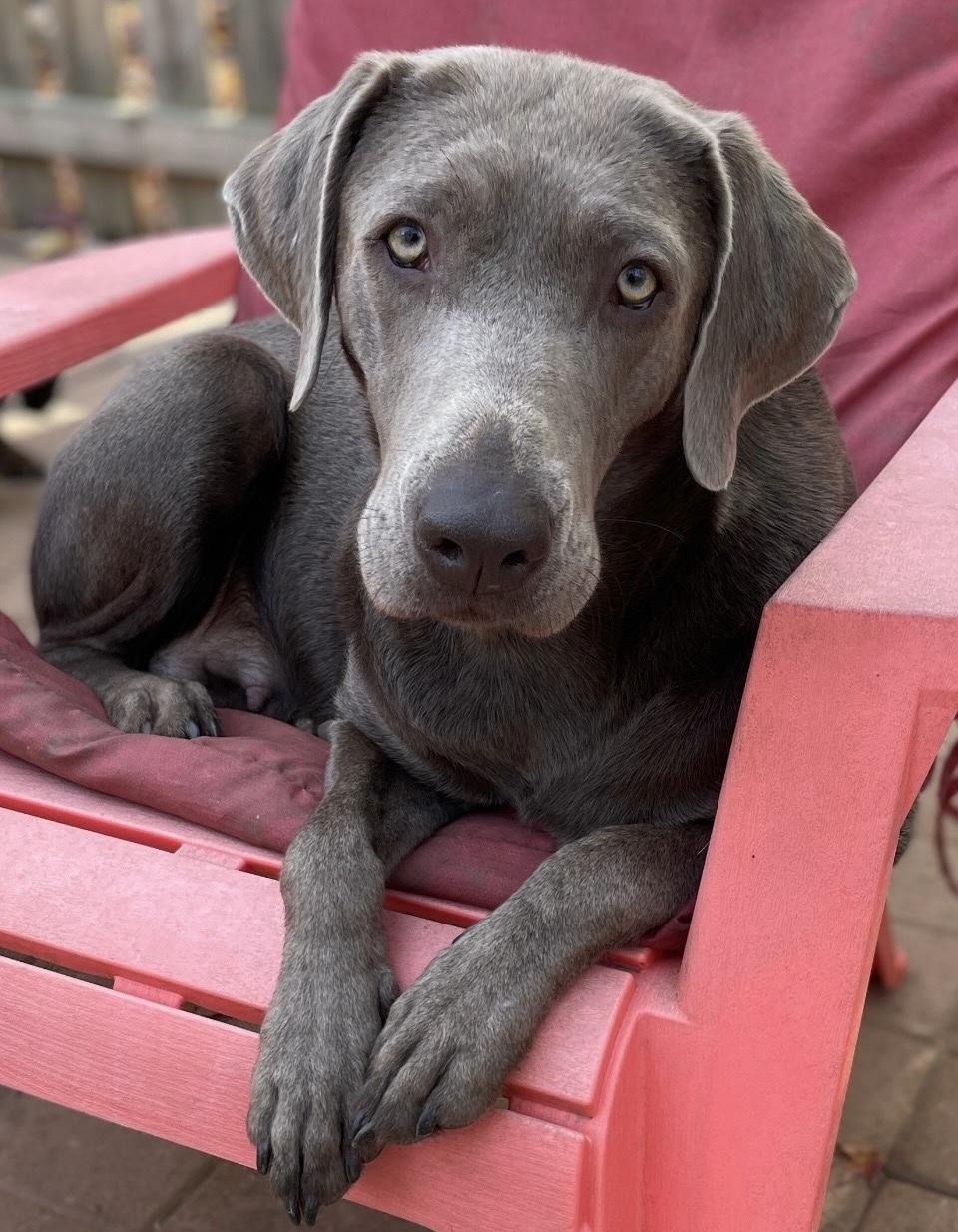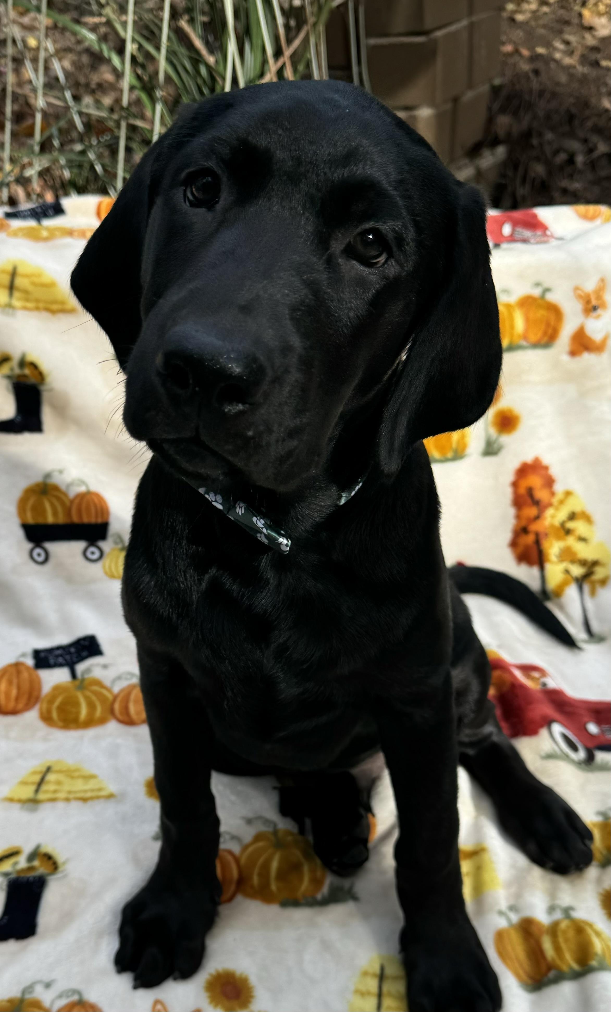 Skye is the calmest Lab you will ever meet. From champion show lines, she comes with a beautiful coat and shape, and chill demeanor. Loves to chase her sister around the yard but would rather come in and get belly rubs. Smart and loves to have a job (she picks up all the food dishes for us.) Her pups have all been playful but calmer than other litters.
