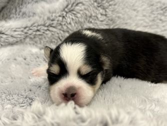 I'm Summer C., the breeder behind Winter’s Perfect Pomskies located in Cumming, IA. The puppies should be between 10-15lbs and have a wonderful disposition! Both the mother and father are extremely smart, very friendly and both have the attributes that we are wanting in a top quality Pomsky, a beautiful soft fluffy coat, petite yet strong bone structure and a loving happy face.