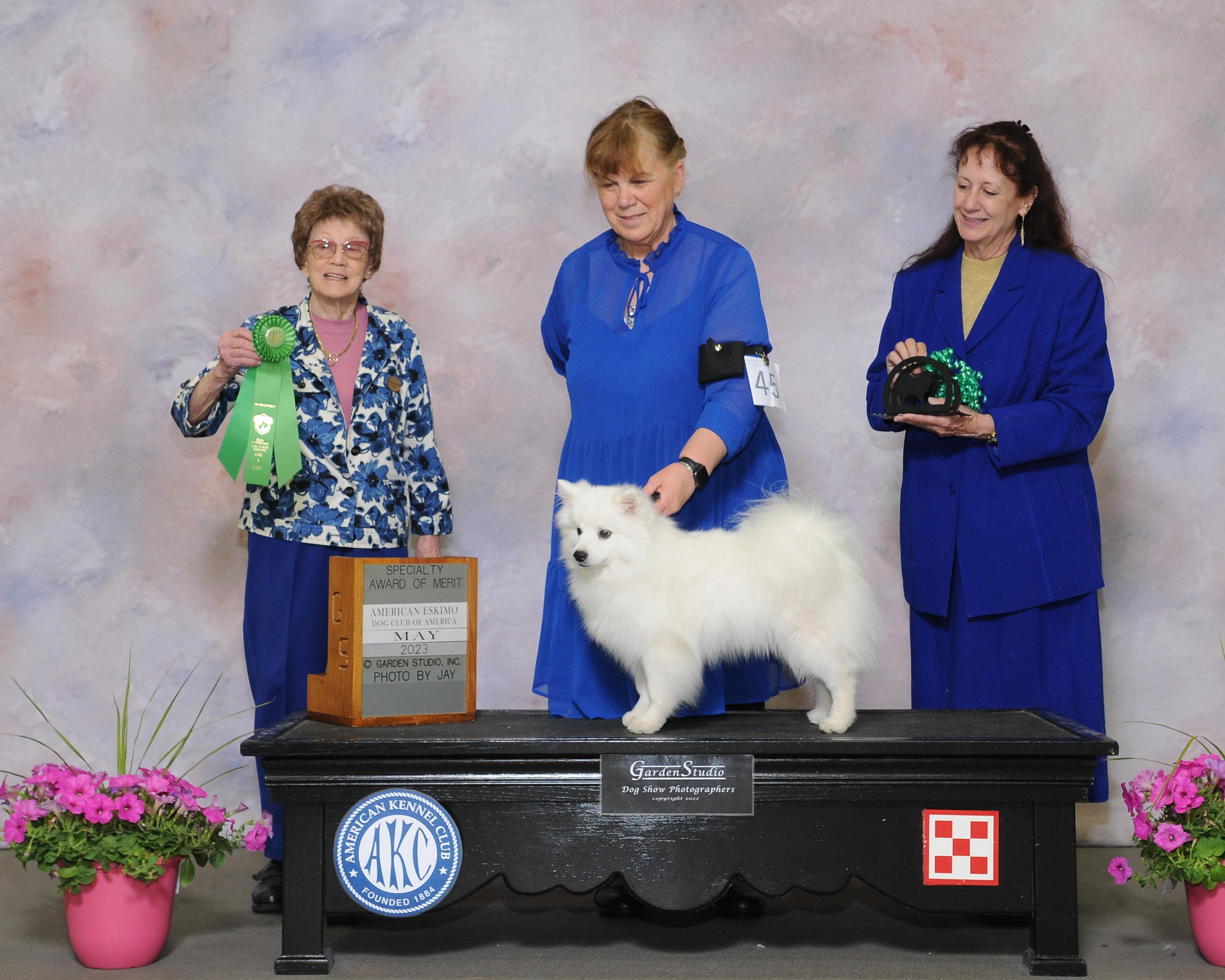 Bree is a female American Eskimo Dog. Carefully selected as a great representative of her breed, Tammy decided to make her part of their program. Tammy has passed Good Dog’s screening process, which involved a review of their breeding practices, environment, and the mental and physical health of their dogs.