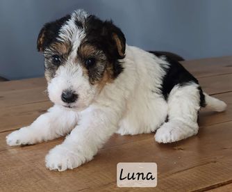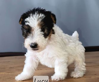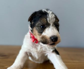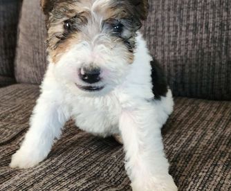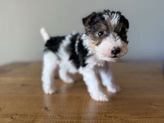 Izzy is a female Wire Fox Terrier. Carefully selected as a great representative of her breed, Jordan decided to make her part of their program. Jordan has passed Good Dog’s screening process, which involved a review of their breeding practices, environment, and the mental and physical health of their dogs.