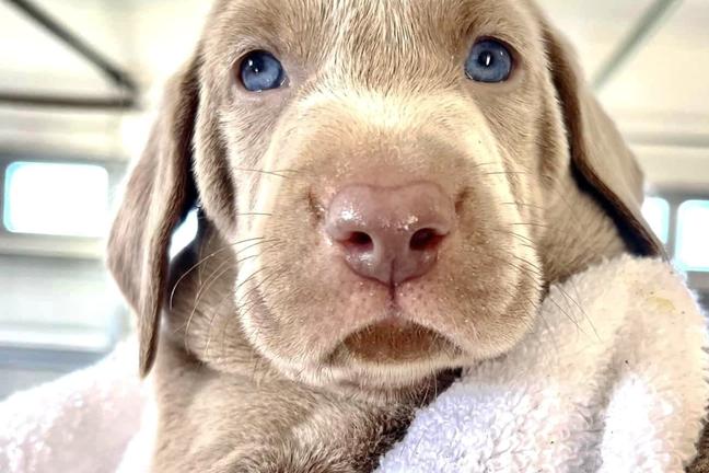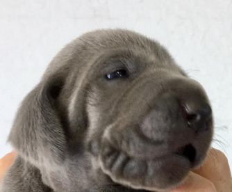 Weimaraner puppies include blue and silver gray. Colors will vary depending on the parent dogs.