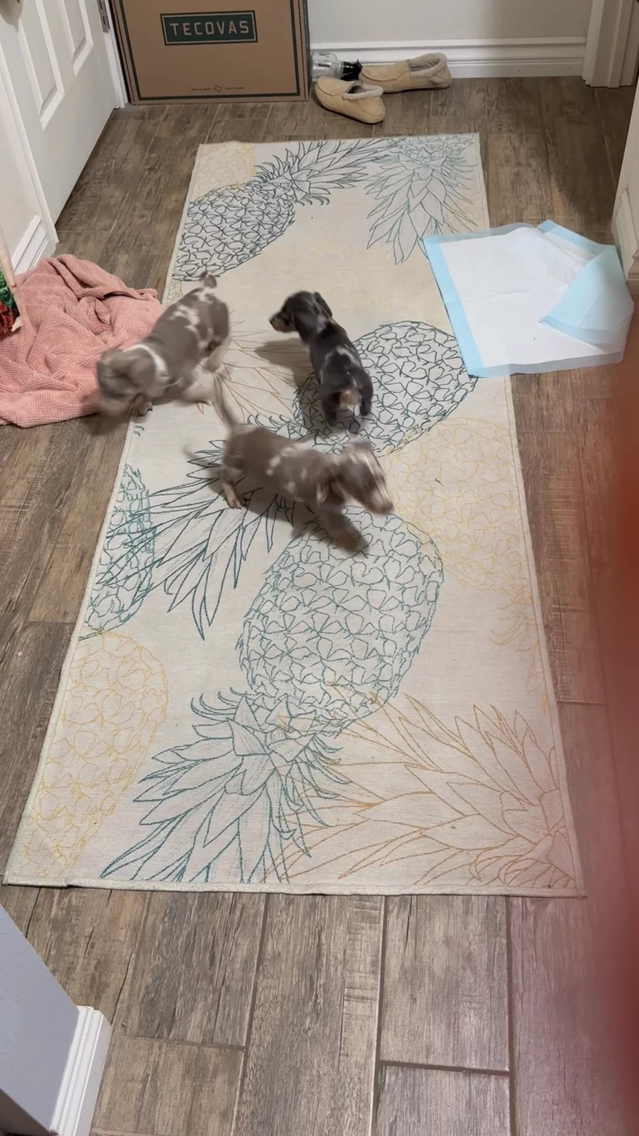 Our puppies include fawn (isabella) and tan, fawn (isabella) and cream, and dapple. Colors will vary depending on the parent dogs.