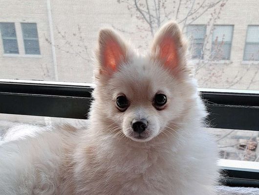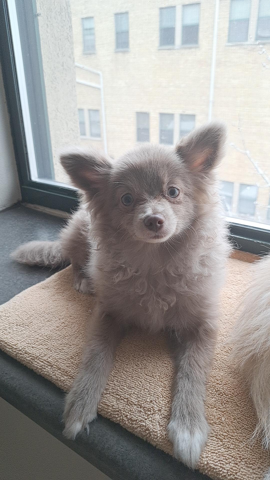 Paloma is very in tune with her surroundings and loves the most attention. Always ready to curl up on your lap and get pets. She is a Lavender pomeranian with the most beautiful gray and blue eyes.