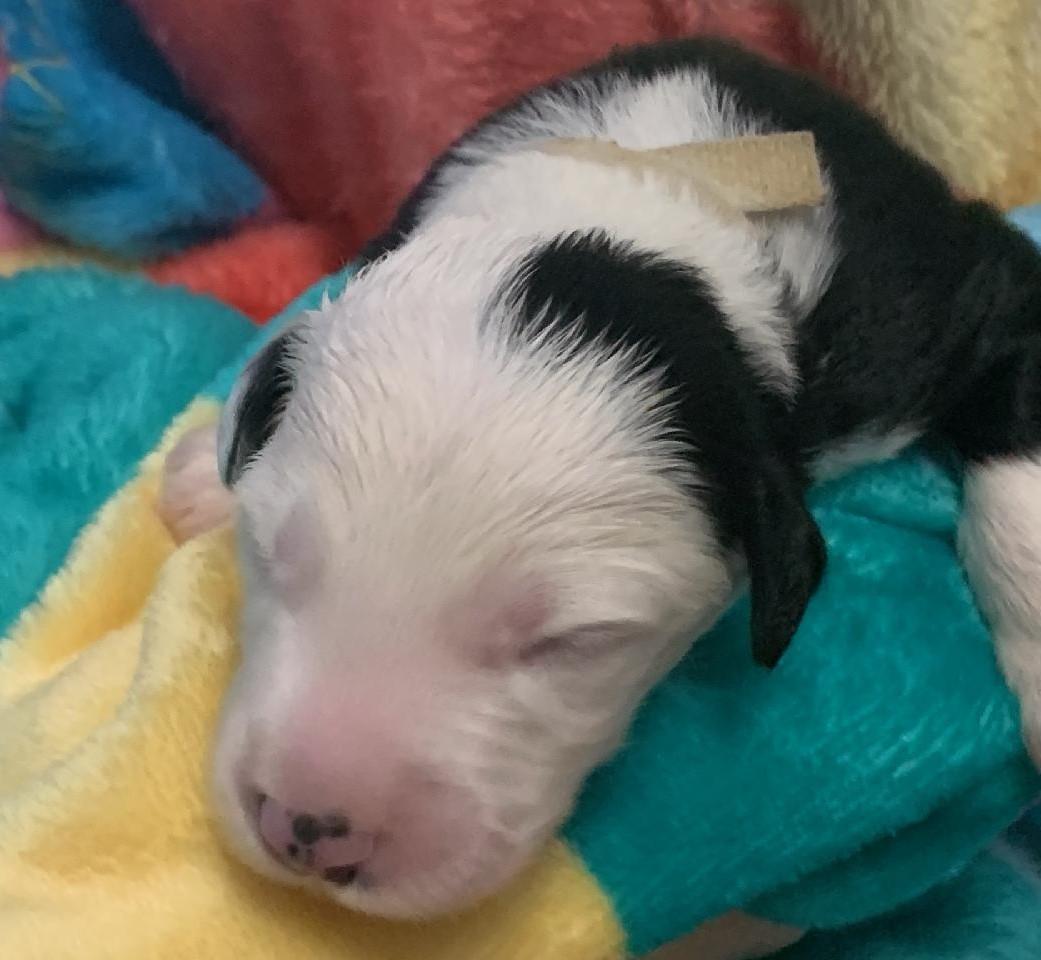 Our puppies are gray and white. Colors will vary depending on the parent dogs.
