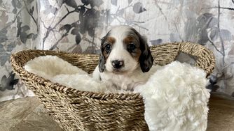Blossom is a female Dachshund. Carefully selected as a great representative of her breed, Krista decided to make her part of their program. Krista has passed Good Dog’s screening process, which involved a review of their breeding practices, environment, and the mental and physical health of their dogs.