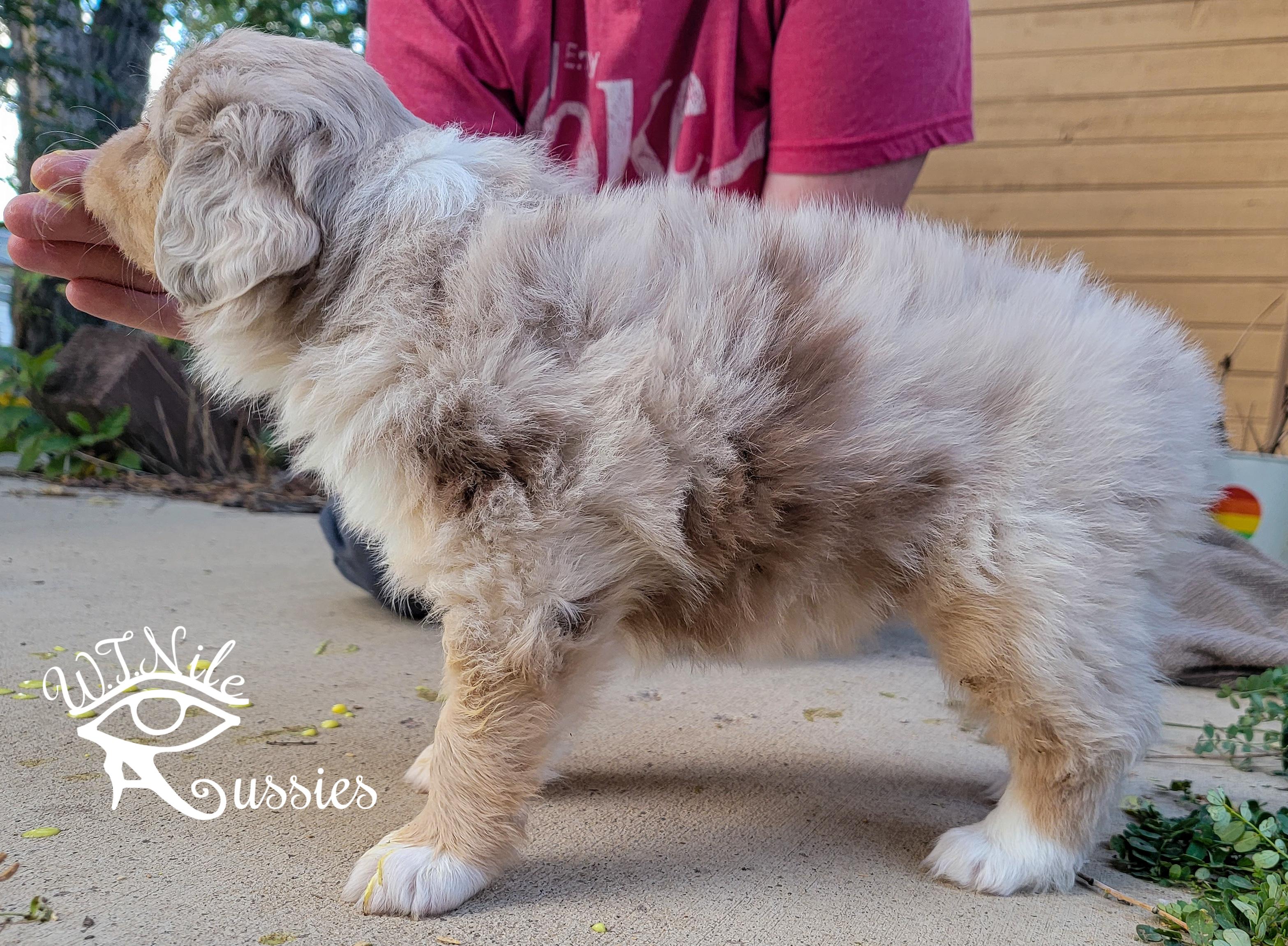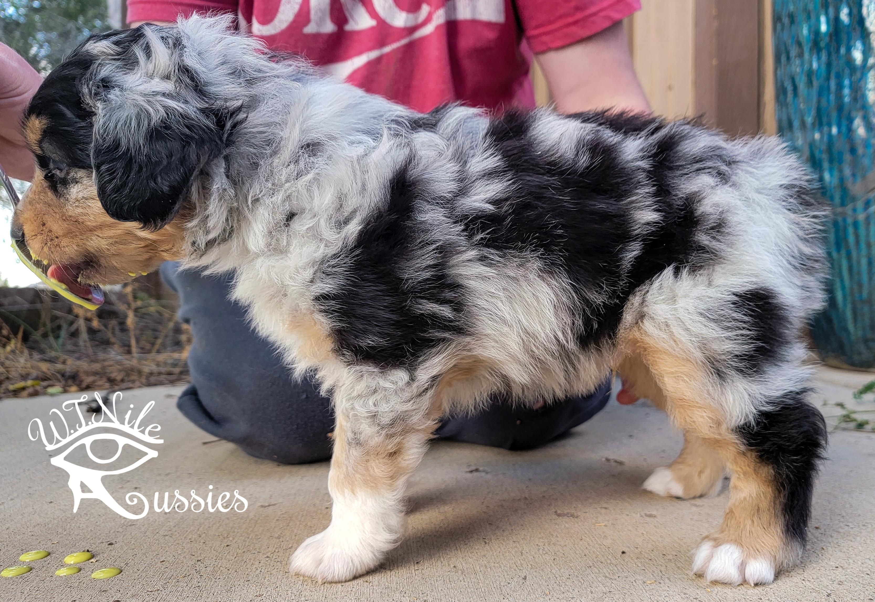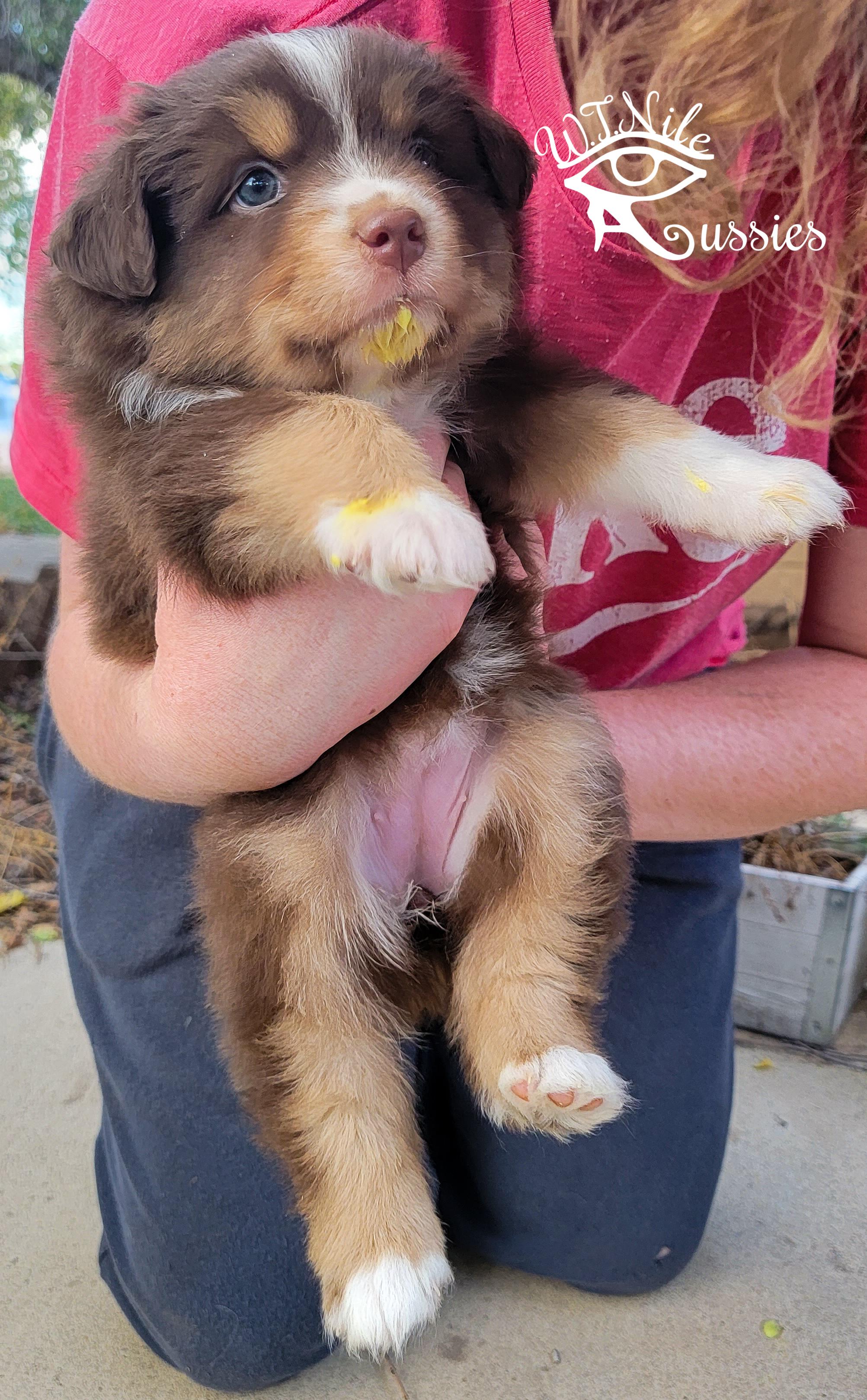 Our Australian Shepherd puppies include black, red merle, blue merle, and red. Toy Australian Shepherd puppies include red, black, blue merle, and red merle. Miniature Australian Shepherd puppies include blue merle, red merle, red, and black. Colors will vary depending on the parent dogs.