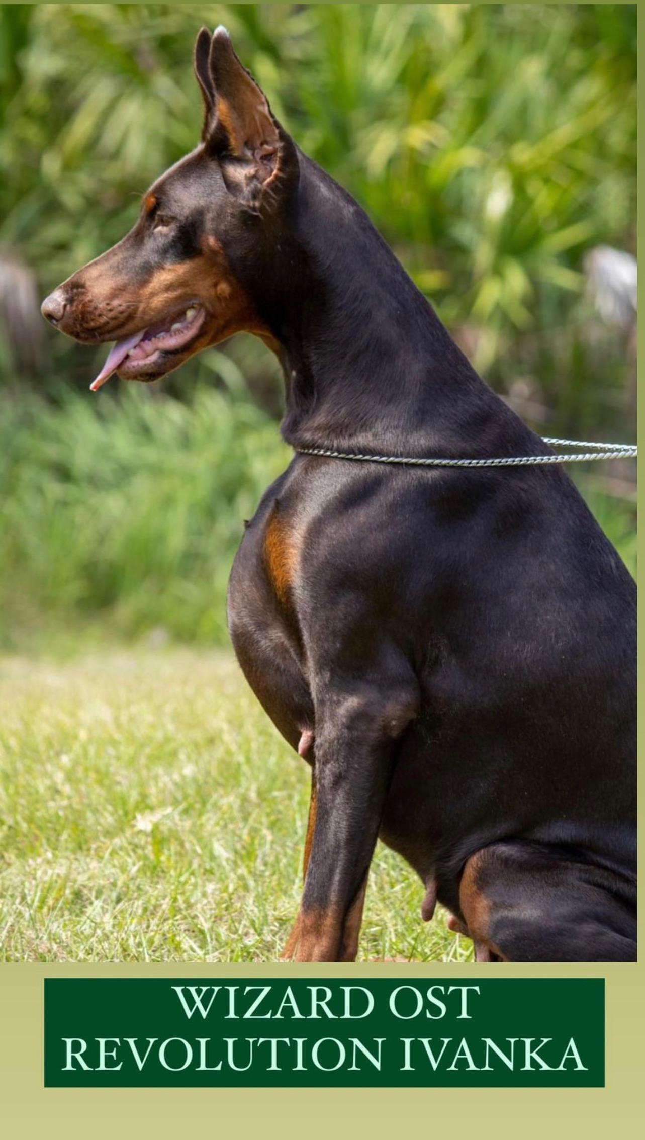 Wizard Ost Revolution Ivanka is a female Doberman Pinscher about 5 years old. Carefully selected as a great representative of her breed, Oksana decided to make her part of their program. Oksana has passed Good Dog’s screening process, which involved a review of their breeding practices, environment, and the mental and physical health of their dogs.