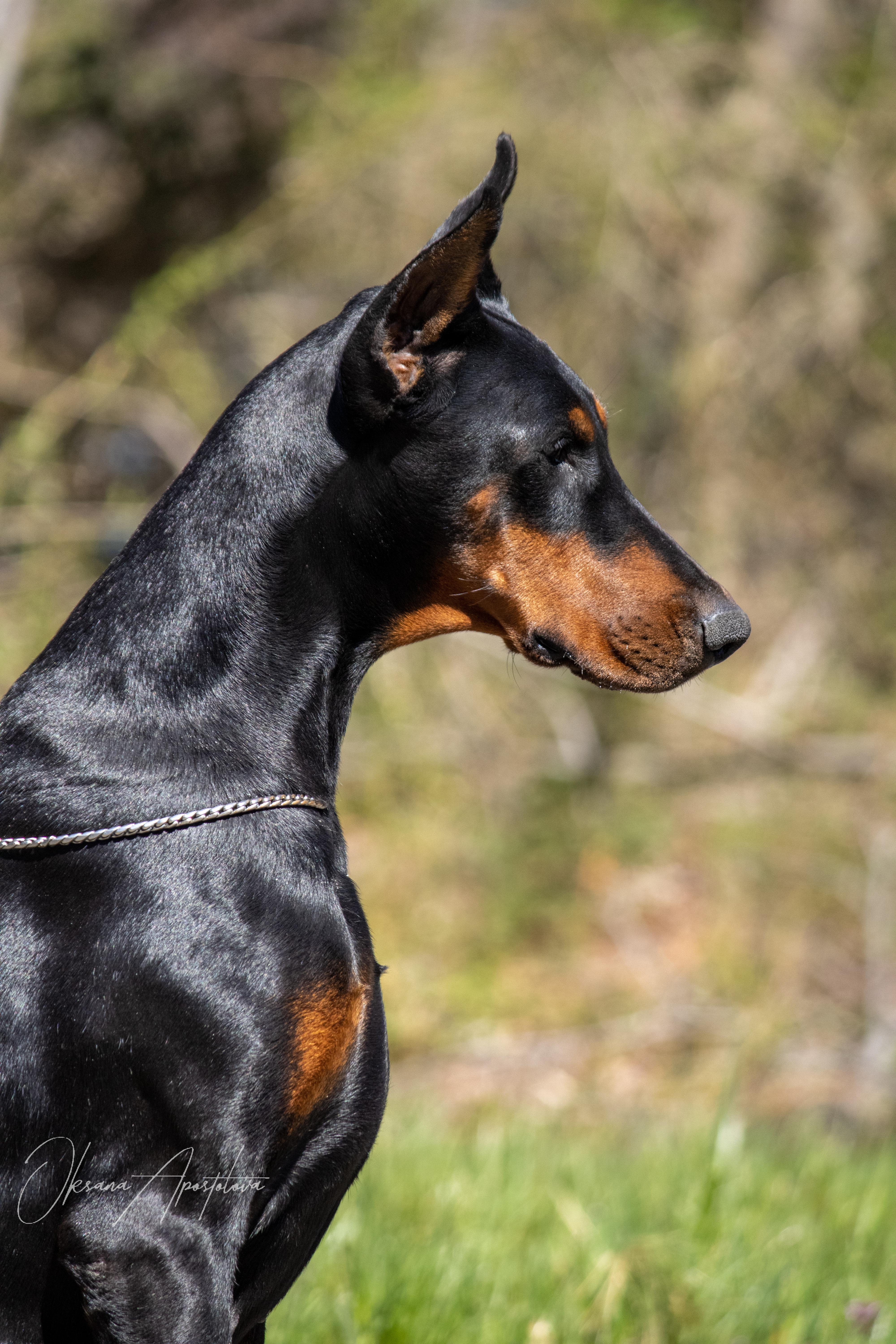 Alina Bosna Shade Of Sunrise is a female Doberman Pinscher. Carefully selected as a great representative of her breed, Oksana decided to make her part of their program. Oksana has passed Good Dog’s screening process, which involved a review of their breeding practices, environment, and the mental and physical health of their dogs.
