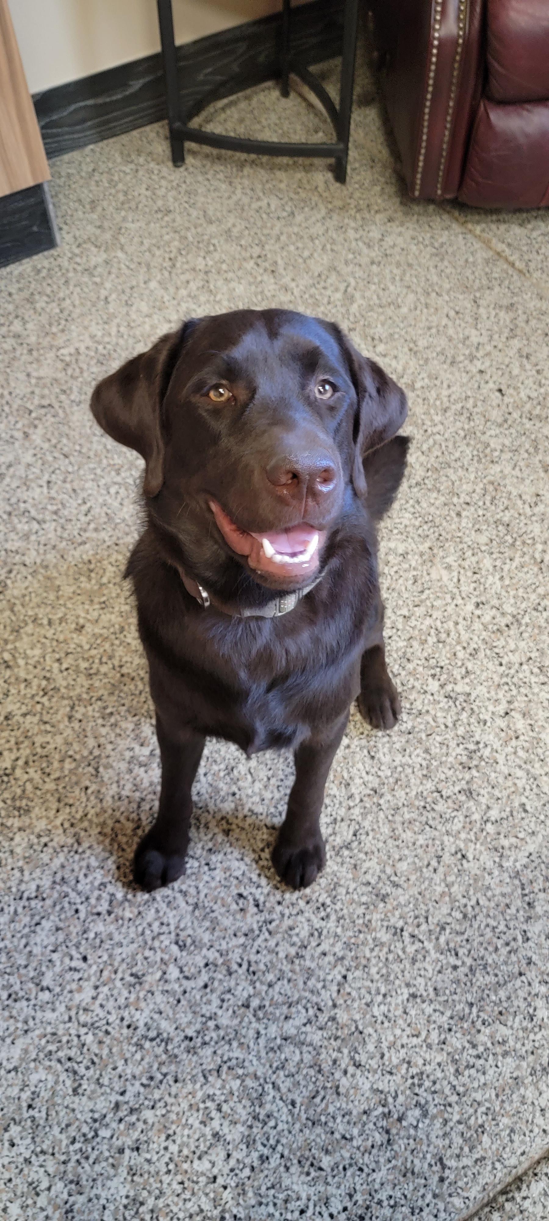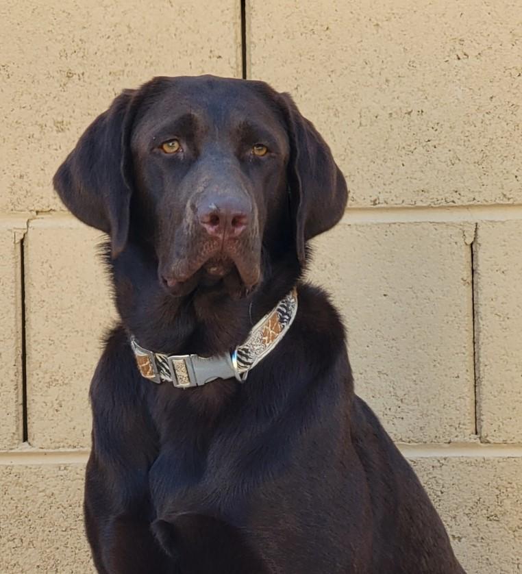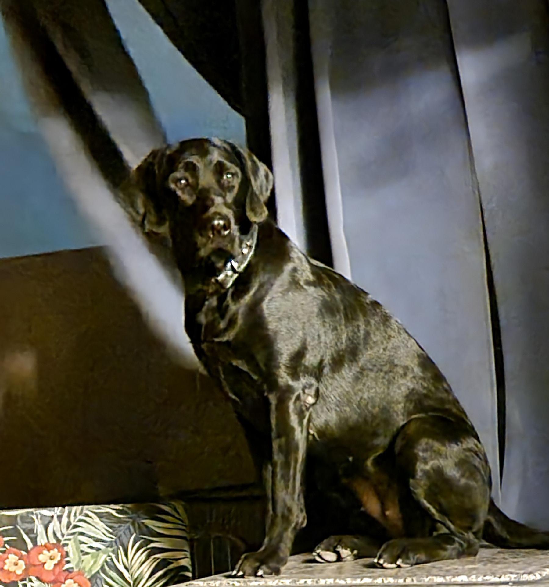 Tessa is a stunning yet joyful, rich, deep Chocolate Labrador Retriever. She has champion hunt test sire and her Mom has 2 Best of Breeds. She is just a joy to be around. Very obedient, loving, and with a quirky sense of humor.