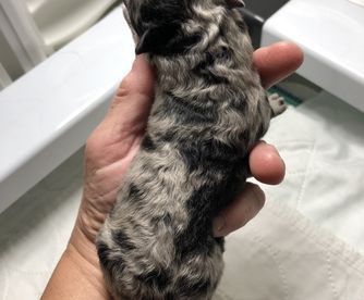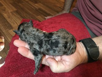 Our puppies are brown merle. Colors will vary depending on the parent dogs.