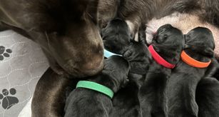 Our puppies include black, chocolate, and yellow. Colors will vary depending on the parent dogs.