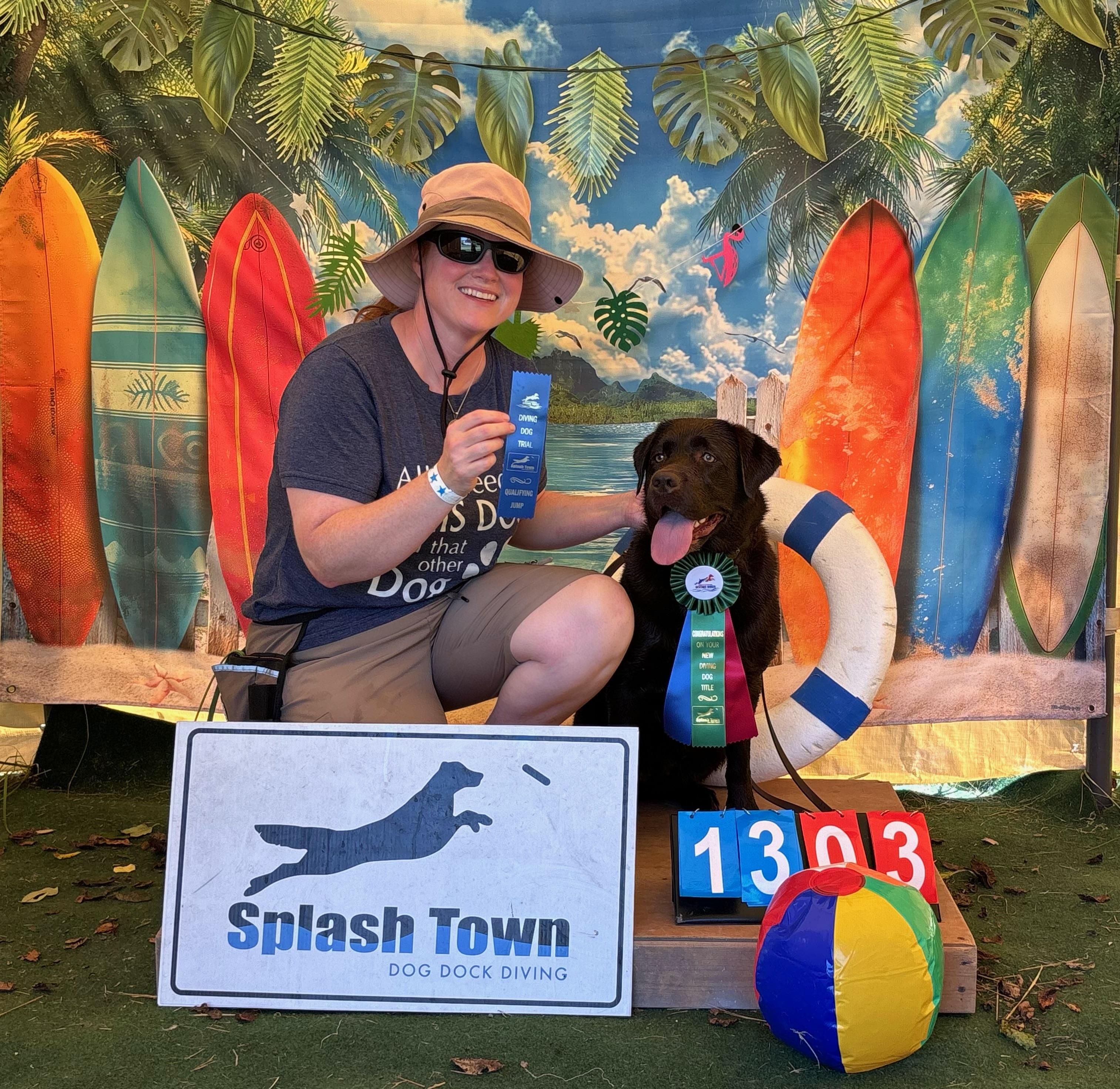 Pixie has a great zest for life. She is funny, extremely smart, and loves to work and learn new things. She has a "can-do" attitude and plenty of drive for any task I have asked of her. She is extremely versatile, with titles in obedience, tracking, dock diving and scent work. She has also done foundation training for service work because she will likely take over as my next service dog when her brother retires.