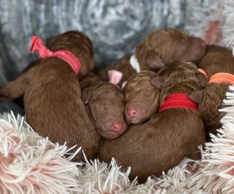 Our puppies include apricot, black, red, and parti. Colors will vary depending on the parent dogs.
