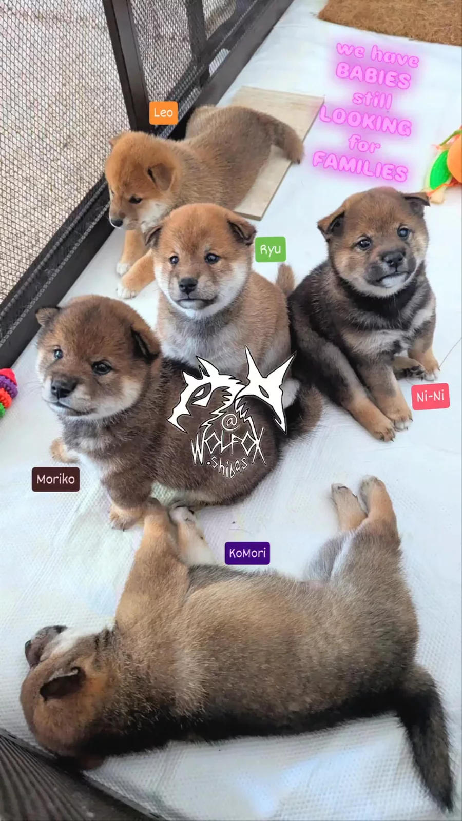 I got my pup from Wolfox last summer and would highly recommend them! My pup is now eight months old. She's happy and healthy, and has a sweet disposition + warm and friendly personality. The process of purchasing a pup from Wolfox was also smooth and easy. Once my application was approved, they shared regular updates along the way and were very responsive to my questions. It's clear that they put a lot of love and work into breeding and raising wonderful shibas.