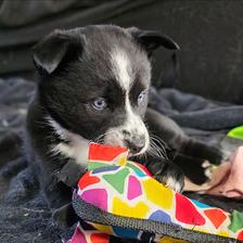 Our puppies include silver and white, tri-color, wolf sable, black, black and white, and merle. Colors will vary depending on the parent dogs.