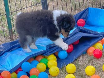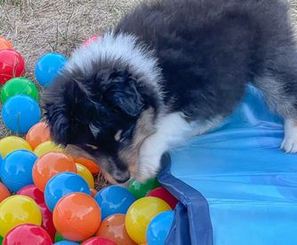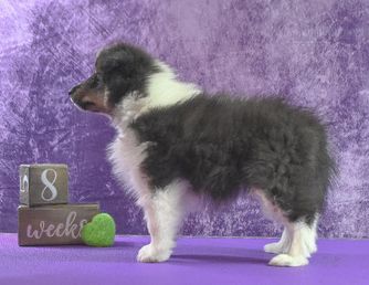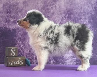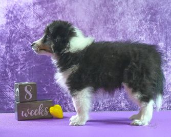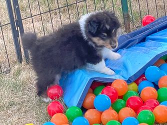 Our puppies include blue merle white and tan, blue merle and white, black white and tan, and black and white. Colors will vary depending on the parent dogs.