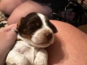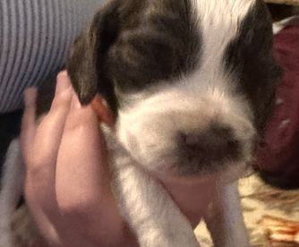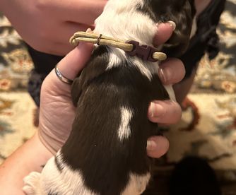 Our puppies include black and white, liver and white, liver white and tan, and black white and tan. Colors will vary depending on the parent dogs.