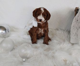 Sassy is a female Goldendoodle. Carefully selected as a great representative of her breed, Diane decided to make her part of their program. Diane has passed Good Dog’s screening process, which involved a review of their breeding practices, environment, and the mental and physical health of their dogs.