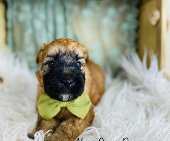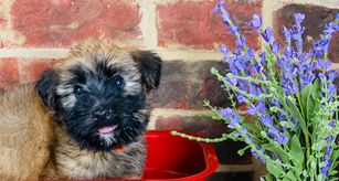 “Parents are genetically health tested for all testable genetic diseases. Puppies are AKC (limited registration). All my puppies are raised with early neurological stimulation, puppy culture and introduced to family life from birth! Puppies are sold on a spay/neuter contract to pet only homes. All of our Wheaties take home a starter bag of must haves, and a 2 year genetic health guarantee. The deposit is taken off of the total balance, with the remaining balance due at pick up. Deposits are non refundable but can roll over to another litter for up to one year.”