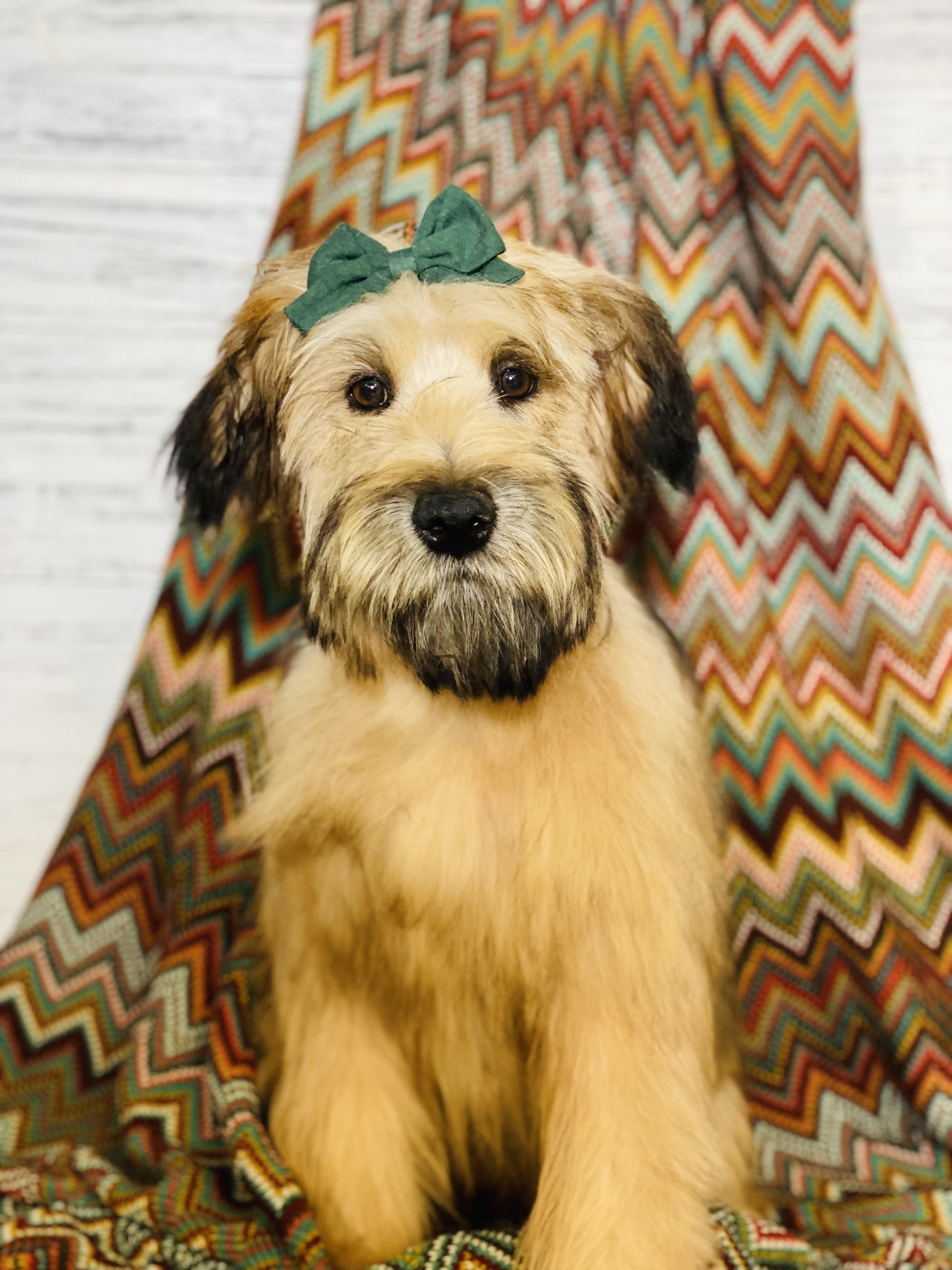 Talihina is a female Soft Coated Wheaten Terrier. Carefully selected as a great representative of her breed, Natalie decided to make her part of their program. Natalie has passed Good Dog’s screening process, which involved a review of their breeding practices, environment, and the mental and physical health of their dogs.