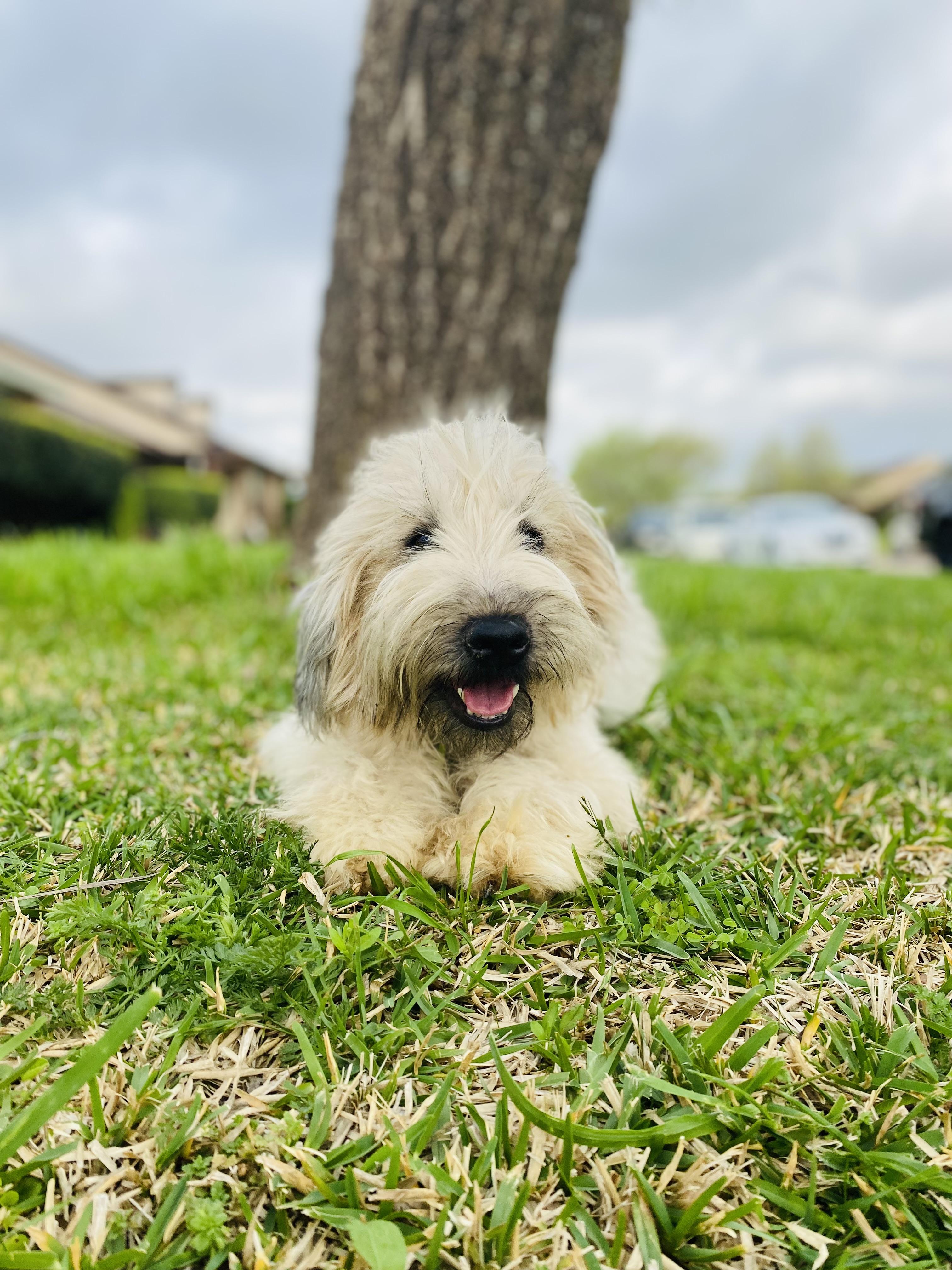 Riot is a male Soft Coated Wheaten Terrier. Carefully selected as a great representative of his breed, Natalie decided to make him part of their program. Natalie has passed Good Dog’s screening process, which involved a review of their breeding practices, environment, and the mental and physical health of their dogs.