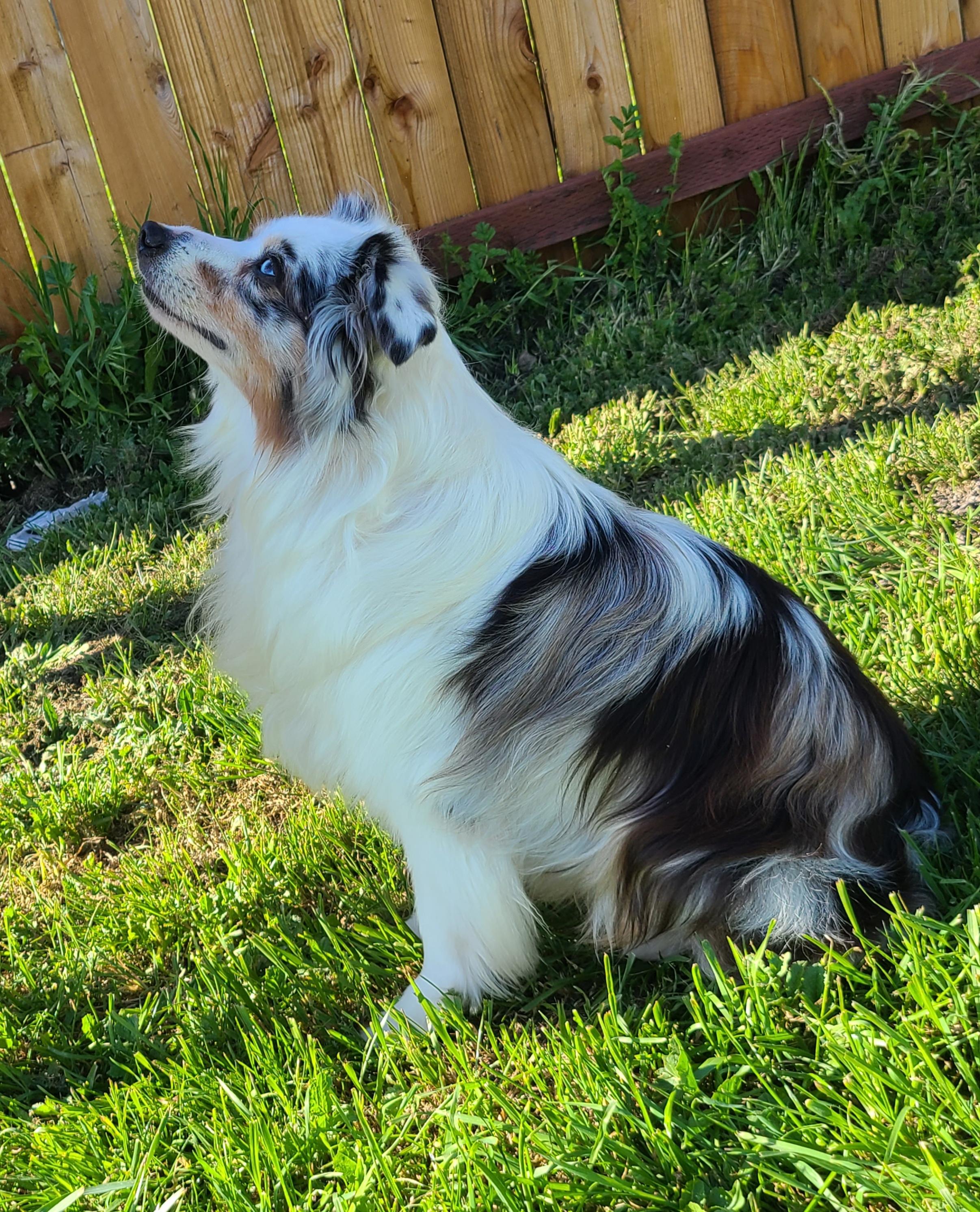 Buster is a male Miniature Australian Shepherd about 13 years old. Carefully selected as a great representative of his breed, Gabrielle decided to make him part of their program. Gabrielle has passed Good Dog’s screening process, which involved a review of their breeding practices, environment, and the mental and physical health of their dogs.