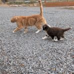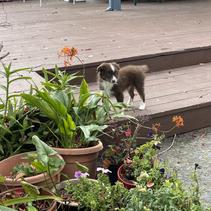 Cumee has been such a well adjusted pup. Very confident and a quick learner. Few accident's from day one and bringing back frisbee at 9 weeks catching it gonna be awhile yet. Totally accepted by the other 2 dogs.