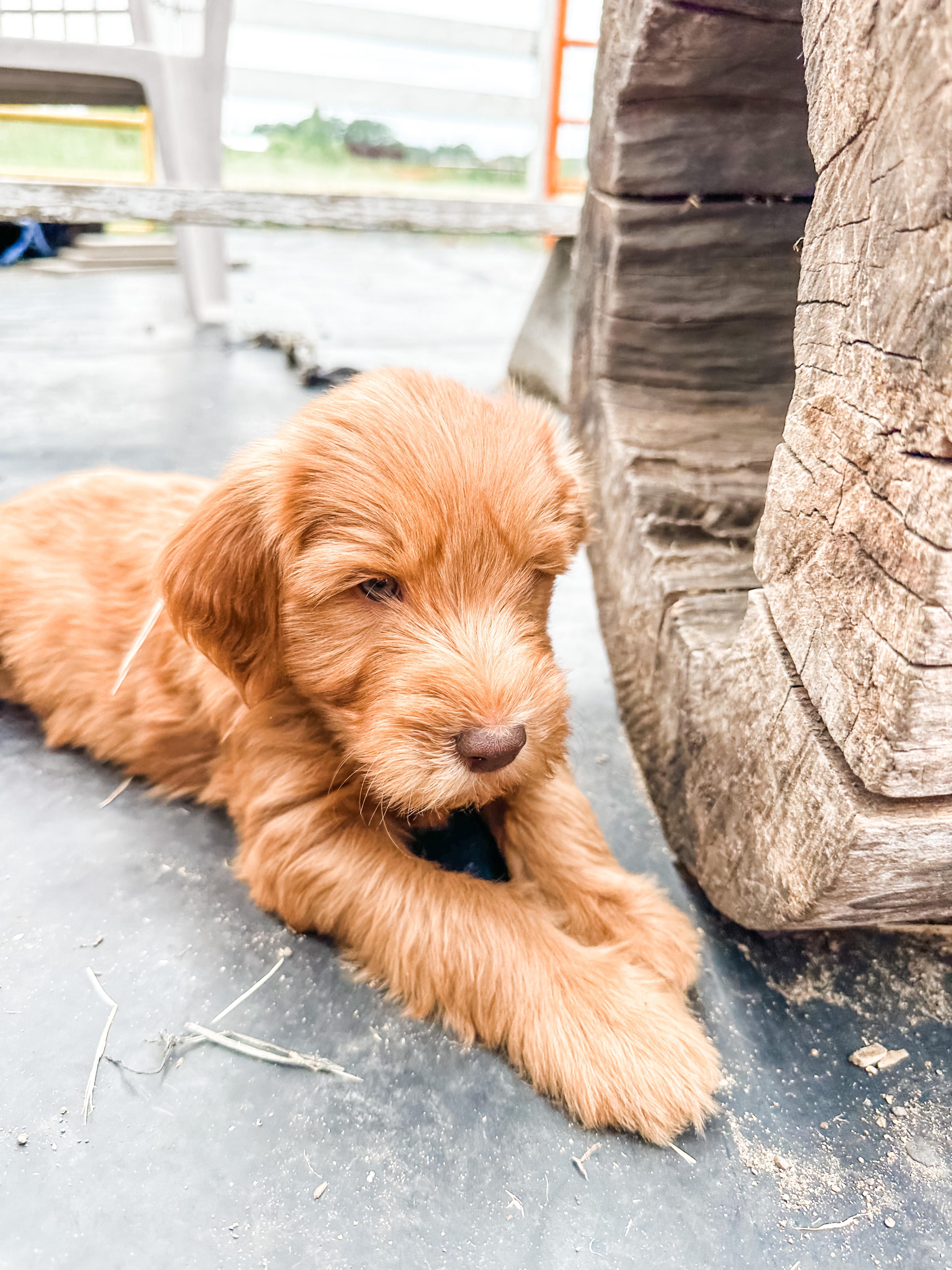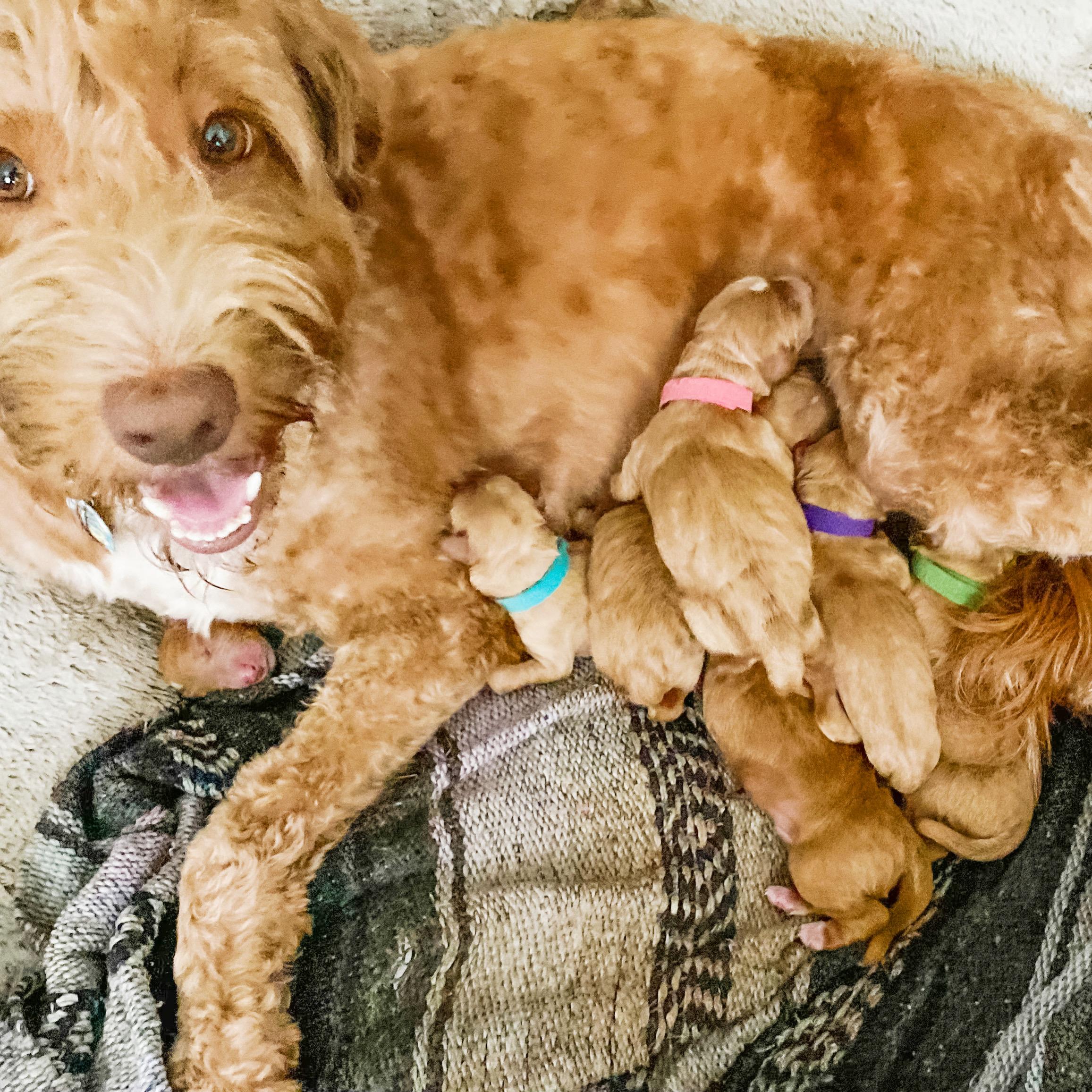 Mabel is a female Goldendoodle. Carefully selected as a great representative of her breed, Tyler decided to make her part of their program. Tyler has passed Good Dog’s screening process, which involved a review of their breeding practices, environment, and the mental and physical health of their dogs.
