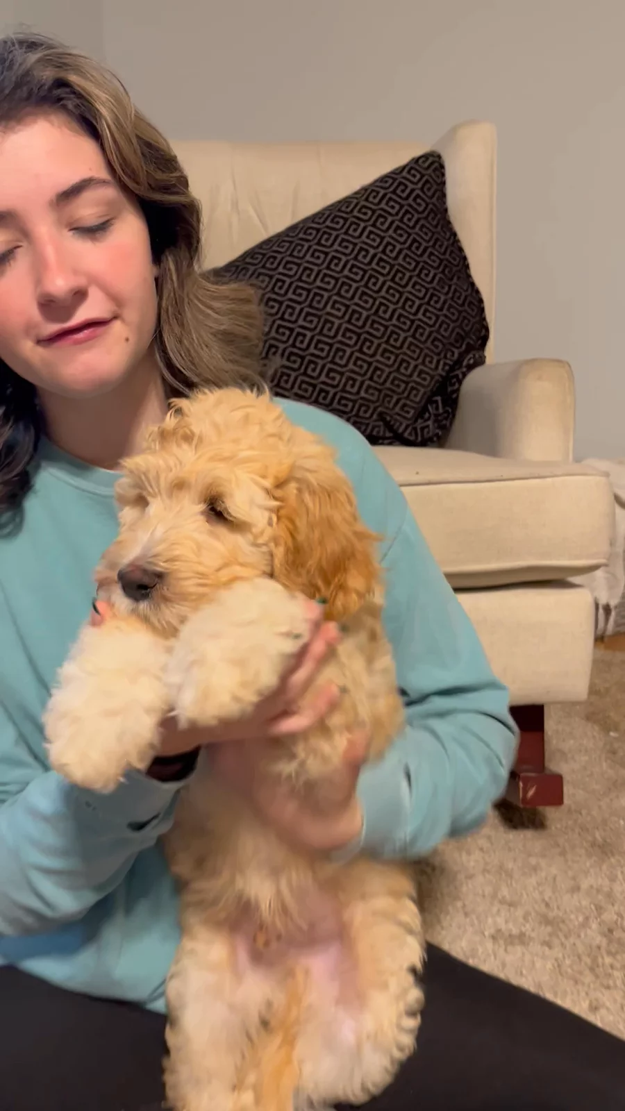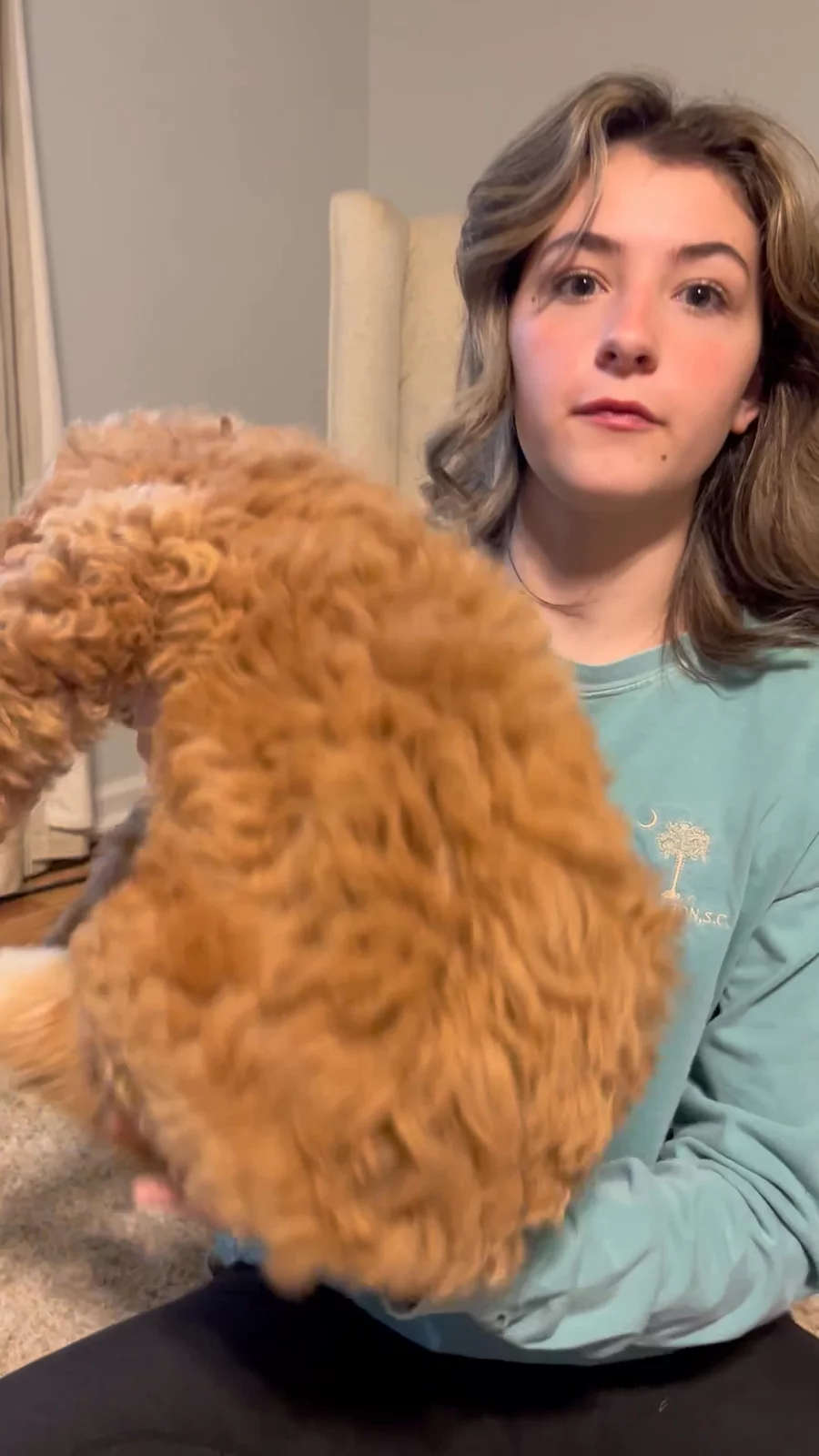 Scout is an F1 Goldendoodle. She's very calm, laid back, and obedient girl. She loves to be a part of our family.