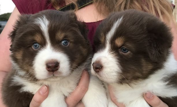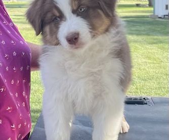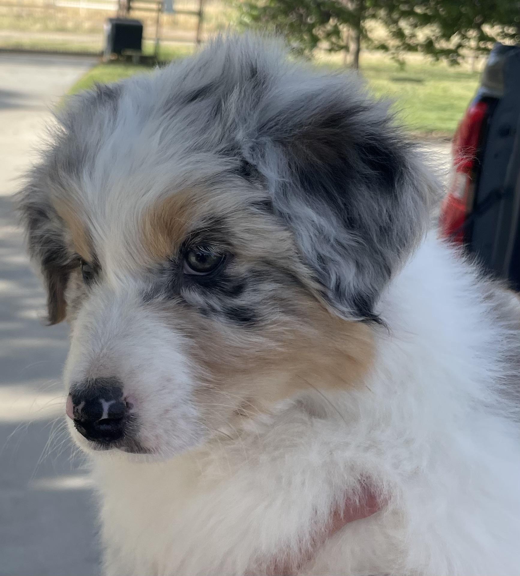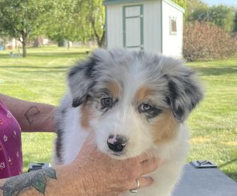 Our puppies include red merle, blue merle, red, and black tri-color. Colors will vary depending on the parent dogs.