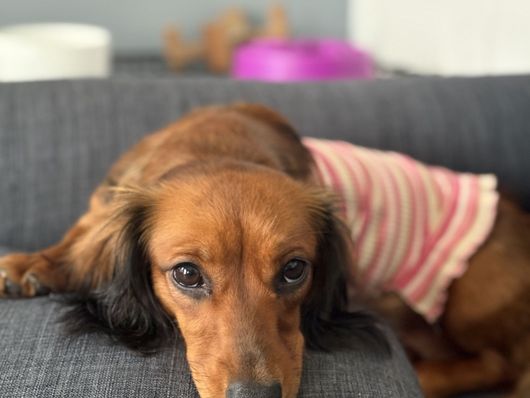Noodles is a sweet as can be little angel. She is a long hair piebald dachshund who loves to cuddle up with her favorite person regardless of what they are doing. She is quiet but always ready for fun.