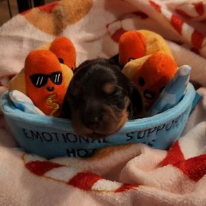 Odie is a CKC silver dapple mini dachshund. He is the sweetest boy who is incredibly gentle and loving. He is an extremely confident little guy who adores kids. There is no better cuddle companion than this little guy.