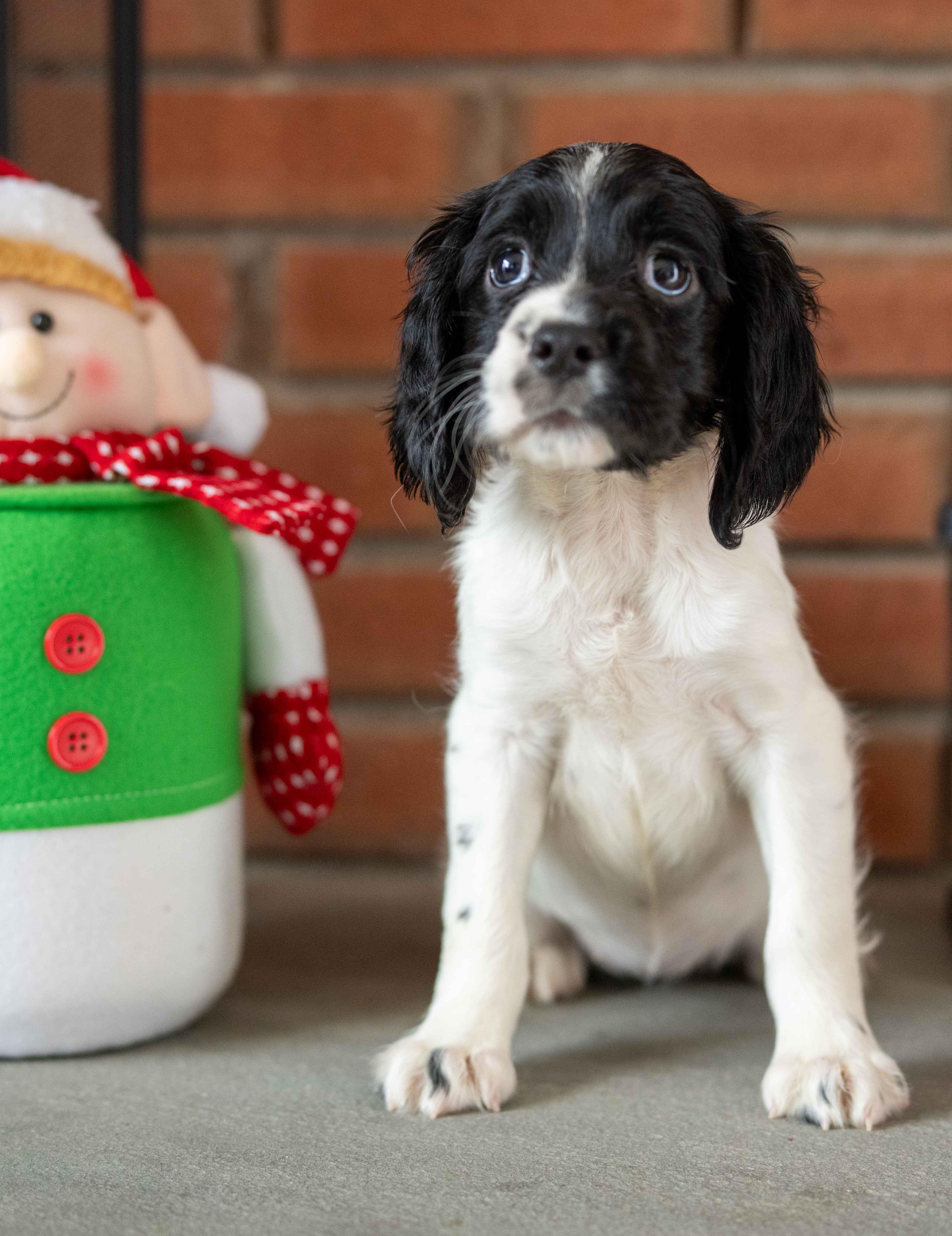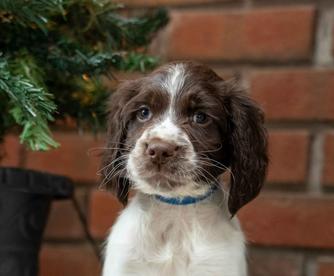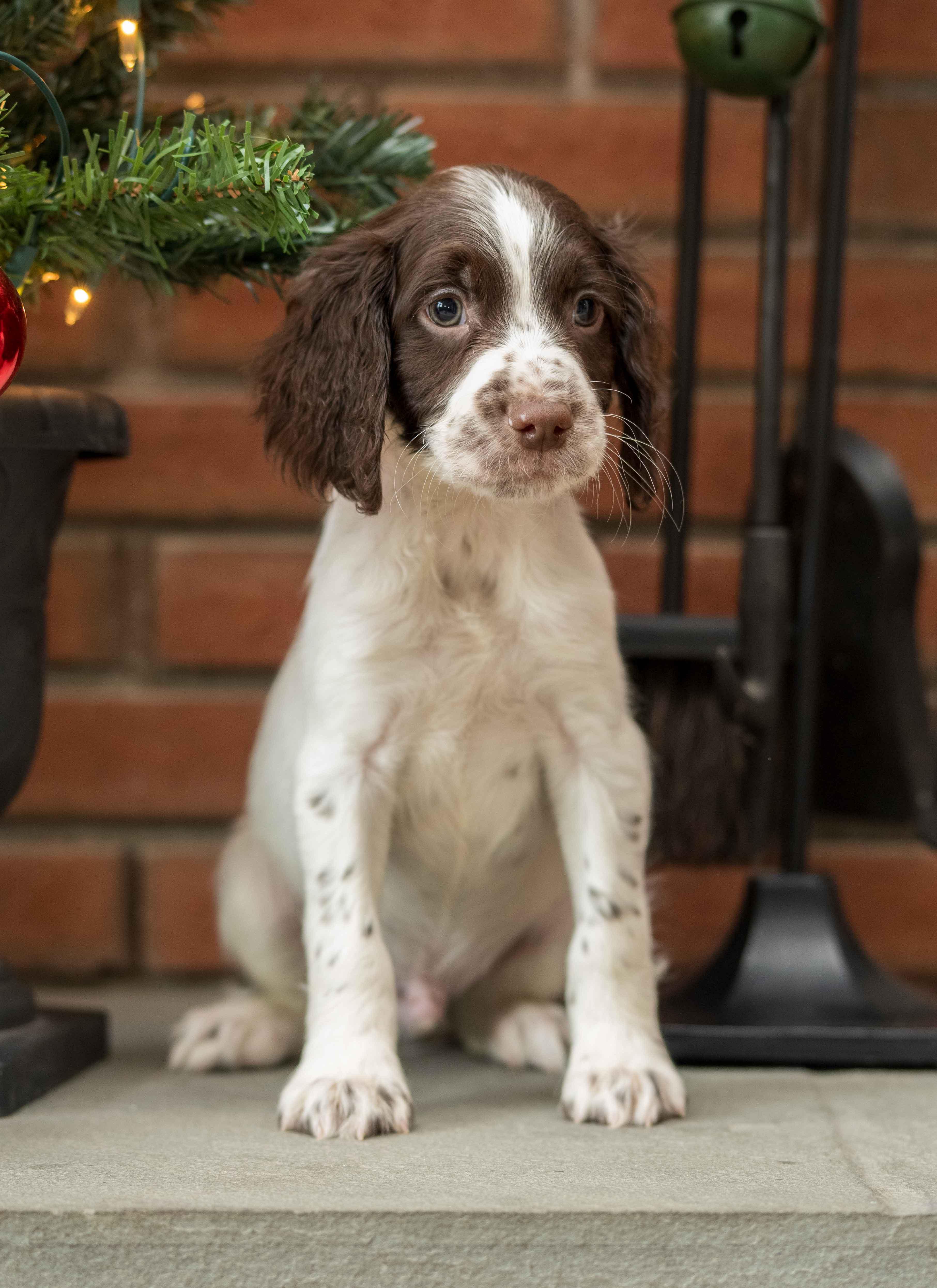 Our English Springer Spaniel puppies include white and liver and white and black. Labrador Retriever puppies include black, chocolate, and yellow. Colors will vary depending on the parent dogs.