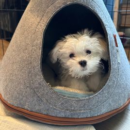 Winston is a male Maltese. Carefully selected as a great representative of his breed, Amanda decided to make him part of their program. Amanda has passed Good Dog’s screening process, which involved a review of their breeding practices, environment, and the mental and physical health of their dogs.