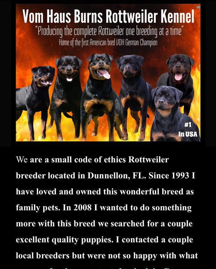 I'm William W., the breeder behind Woods AKC Rottweiler located in Mansfield, TX. Our dog is bread for pets, breading or Show. They are smart intelligent and very athletic. We are dedicated to bring your families with best of the best Guaranteed.